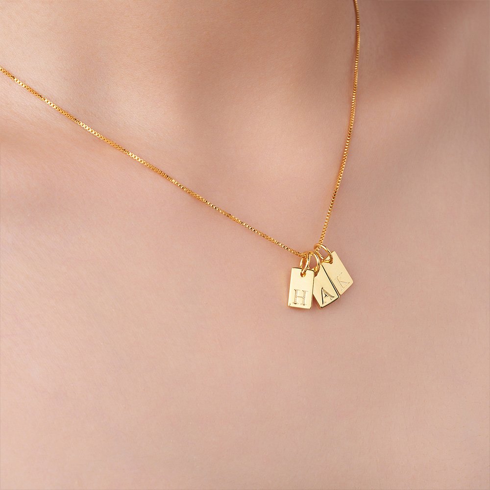 This necklace is eye-catching with its mini tag design. You can personalize it with your initials, up to 1-5 initials. Each necklace is unique, as if it were made just for you, exuding a unique personality.