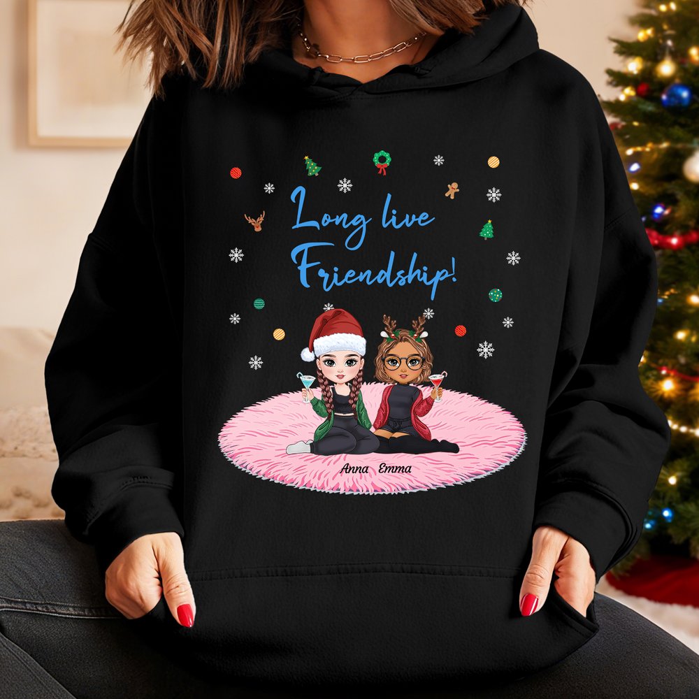This clothing cleverly combines 2-6 cartoon besties with their names, incorporating festive elements like Christmas hats and snowflakes to create a unique friendship keepsake. Each character's hairstyle and outfit can be customized to reflect your friend's unique personality, creating a lively and exclusive design.
