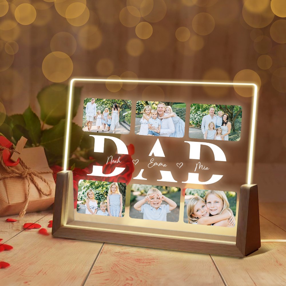 This night light can be customized with up to six children's names and photos. You can choose to put in 2, 4 or 6 photos to show the intimate moments of family members. The design of the night light includes a large "DAD" with a hollowed-out middle, where you can add each child's name and a love symbol to increase personalization and emotional value. Balance beauty and practicality.