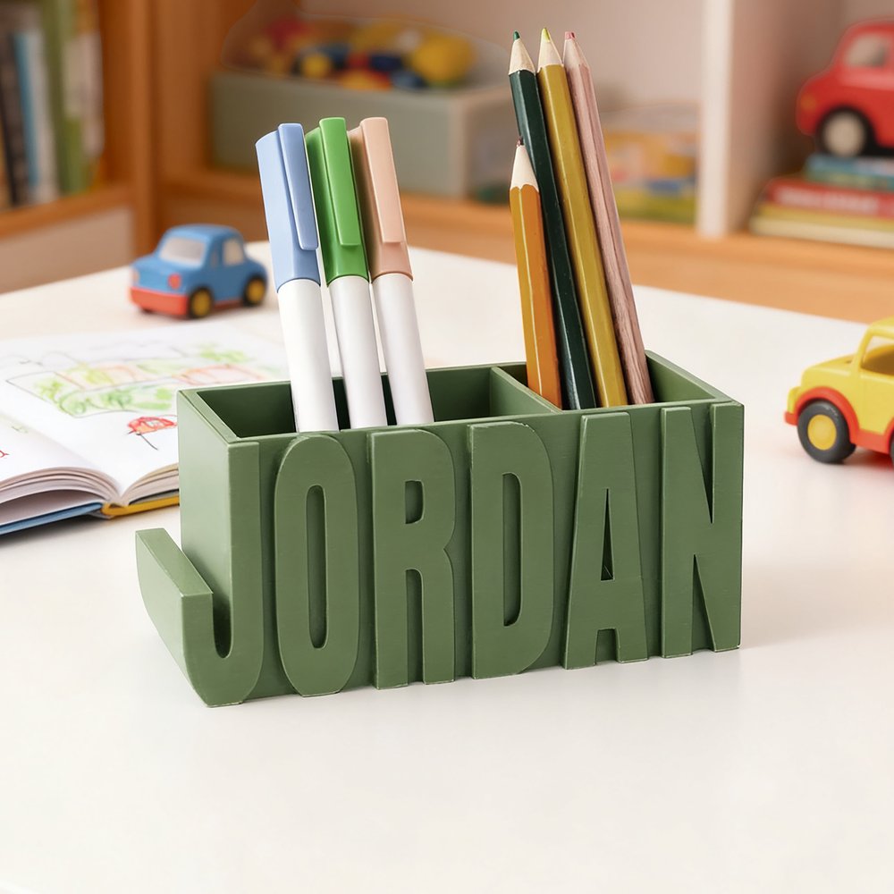 This personalized pen holder features a creative 3D-printed structure in which the letters of your name extend into the body of the holder. It brings personality and fun to any desk.
