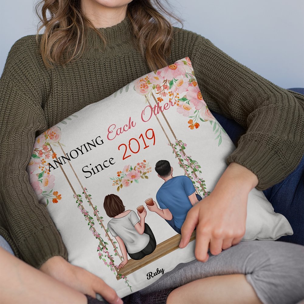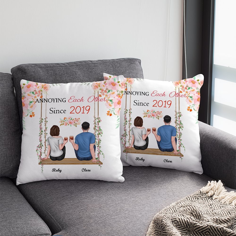 The throw pillow cover is available in multiple sizes to fit different pillow inserts and can be customized with character designs, texts, and images to make unique and personalized gifts for girlfriends, boyfriends, and couples.