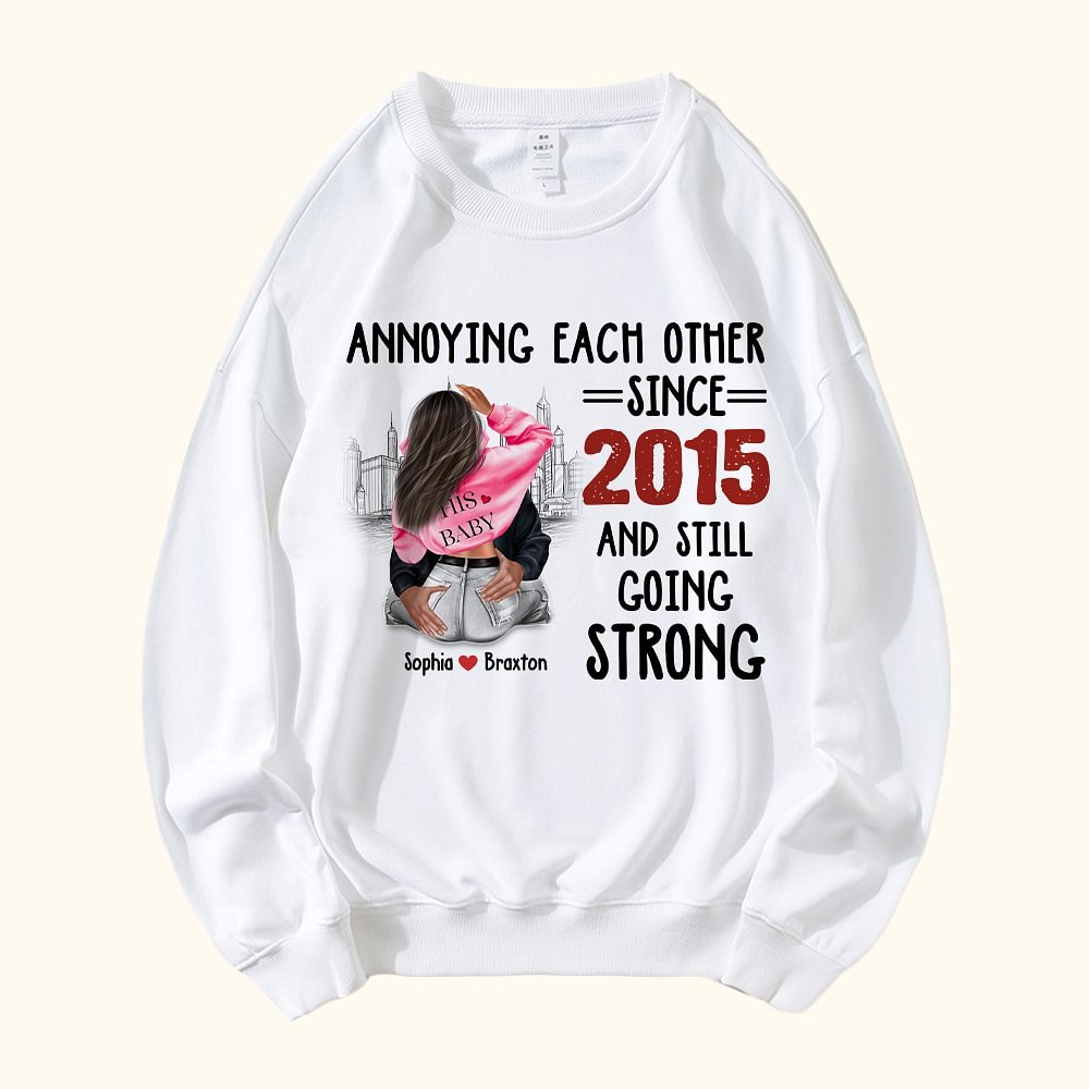 The personalized "Annoying Each Other Since Many Years" garment is the perfect Valentine's Day gift for couples who want to showcase their enduring love and playful bond. The witty and affectionate phrase printed on the clothing reflects the unique dynamics of your relationship, making it a heartfelt and memorable gift choice.