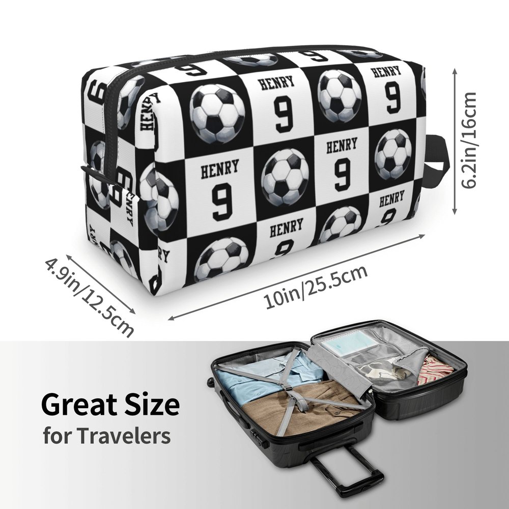 Personalized Basketball Football Sport Check Portable Toiletry Bag with Name and Handle Travel Accessory Game Day Birthday Gift for Sports Lover