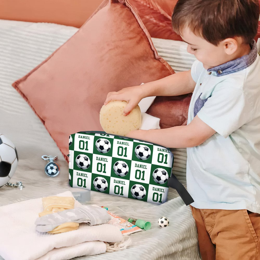 Use it to pack toiletries for family trips, weekend getaways, or visits to friends’ houses, keeping items like toothbrushes, lotions, and small toys neatly organized. The bag’s compact size and lightweight design make it easy for kids to carry, while the secure zipper and handle ensure items stay safe and accessible. Whether for a beach vacation or a soccer tournament, this bag combines functionality with sports-themed style, making organization fun for young users.