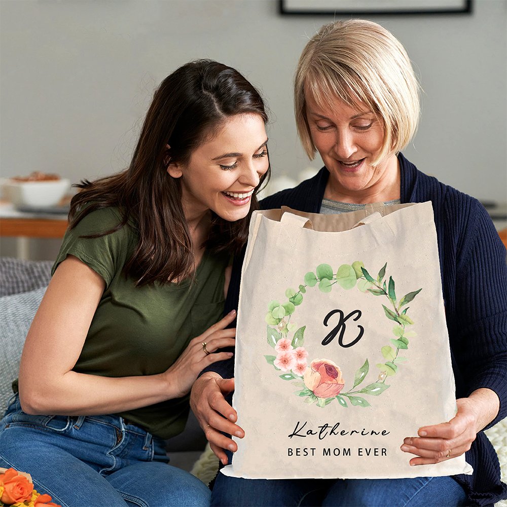 Adorned with a delicate floral wreath frame, this canvas tote bag exudes a romantic and refreshing vibe, adding a touch of warmth and festivity to the overall design. The exquisite floral wreath design not only conveys heartfelt blessings to Mom but also seamlessly blends practicality with aesthetics, making it a cherished gift for Mom or any special woman in your life.