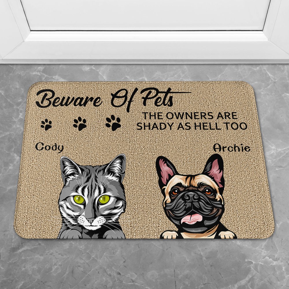 Personalized Beware of Pets Super Absorbent Door Mat Housewarming Christmas Gift for Dog Cat Pet Lovers