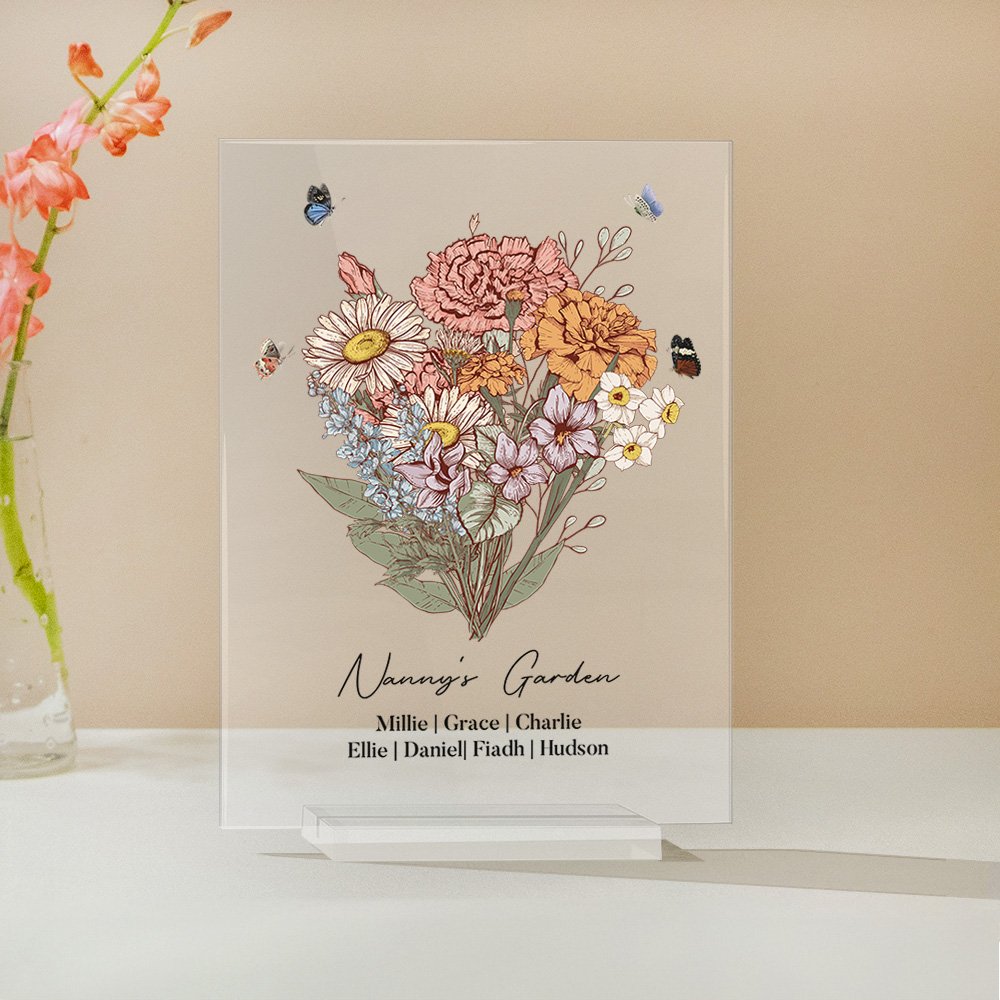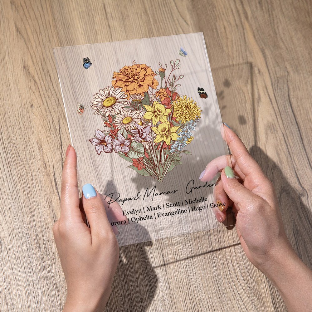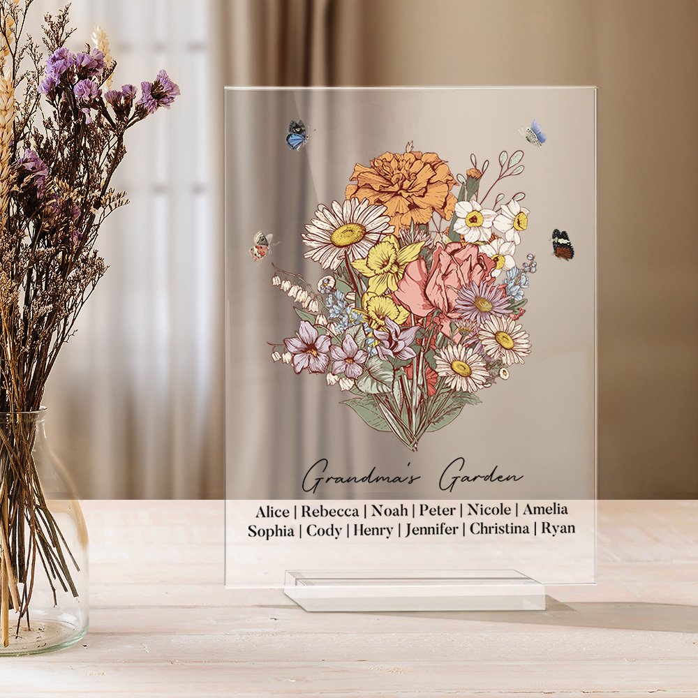 Each plaque is meticulously crafted to showcase the birth flower of your loved one. With a variety of beautiful birth flowers to choose from. With our personalized acrylic plaque, you can choose the birth flower that holds special meaning for your grandma or mom, making this gift truly one-of-a-kind.
