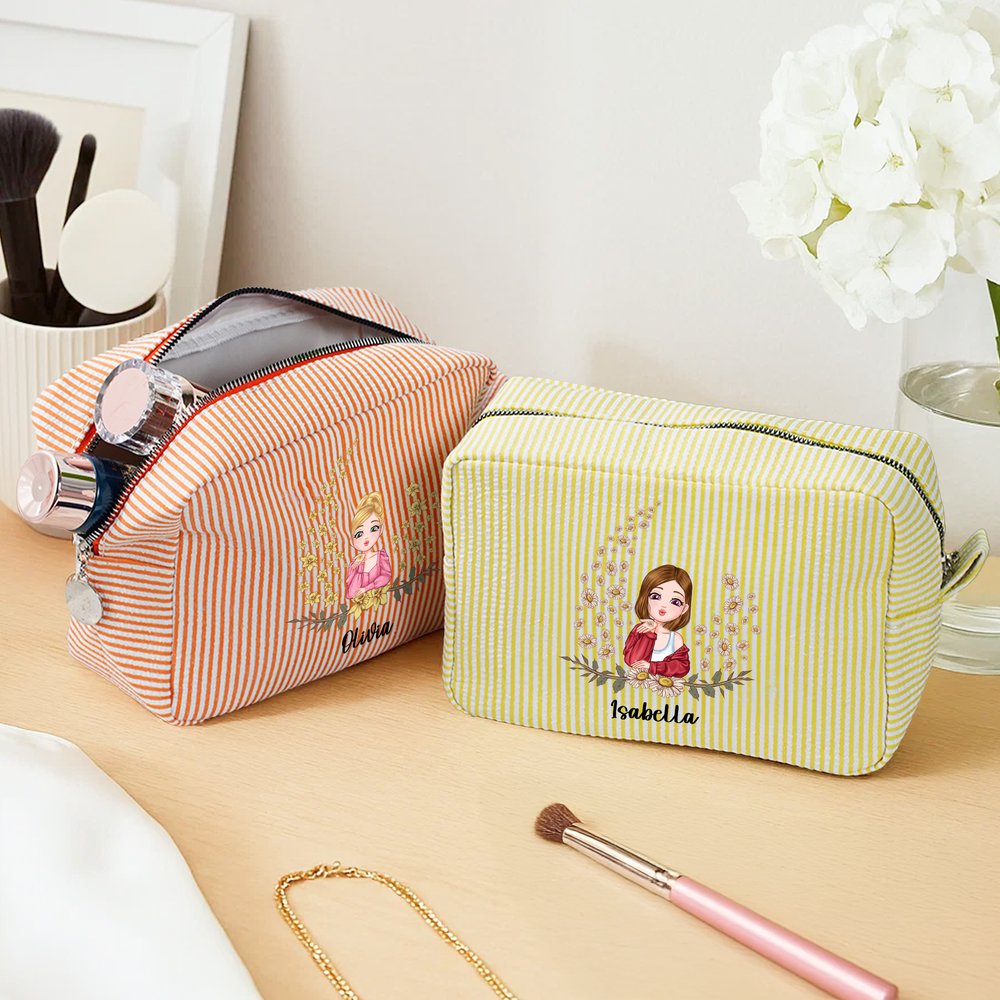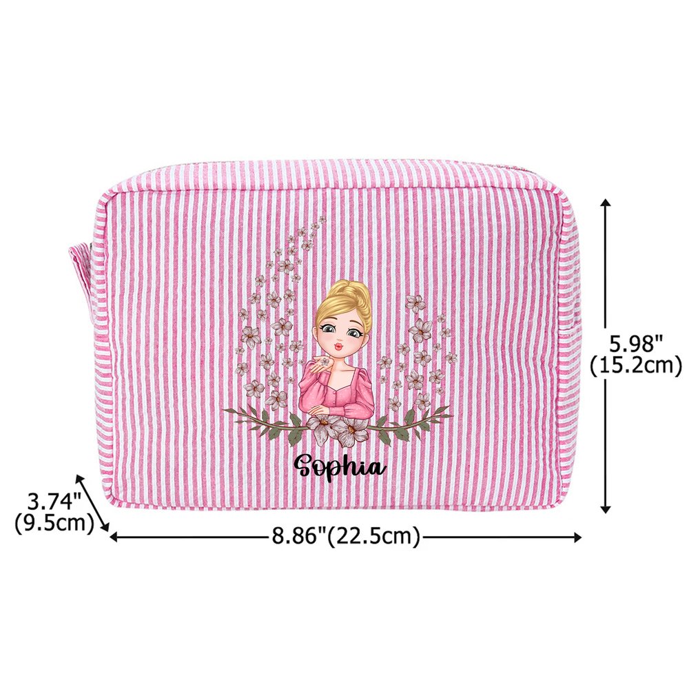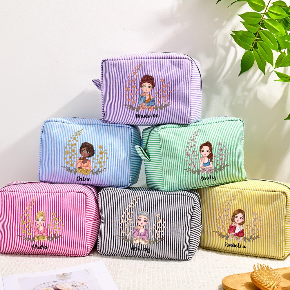 This makeup bag features a cartoon girl and birth flower, perfectly blending personal style with romantic meaning. Each birth flower corresponds to a specific month and carries its own unique meaning and blessing, making each design deeply personal. You can also incorporate the recipient's name into the design, transforming it into a stylish accessory that carries both identity and a story.