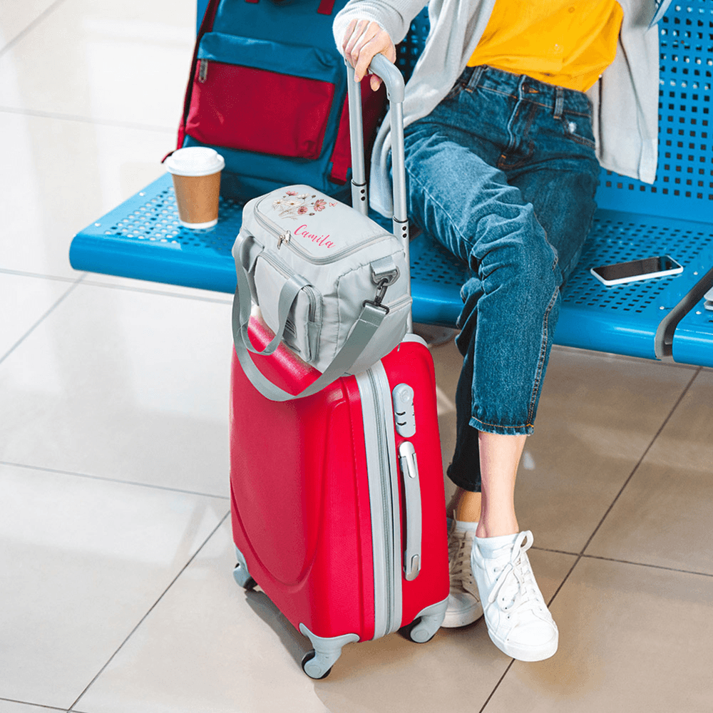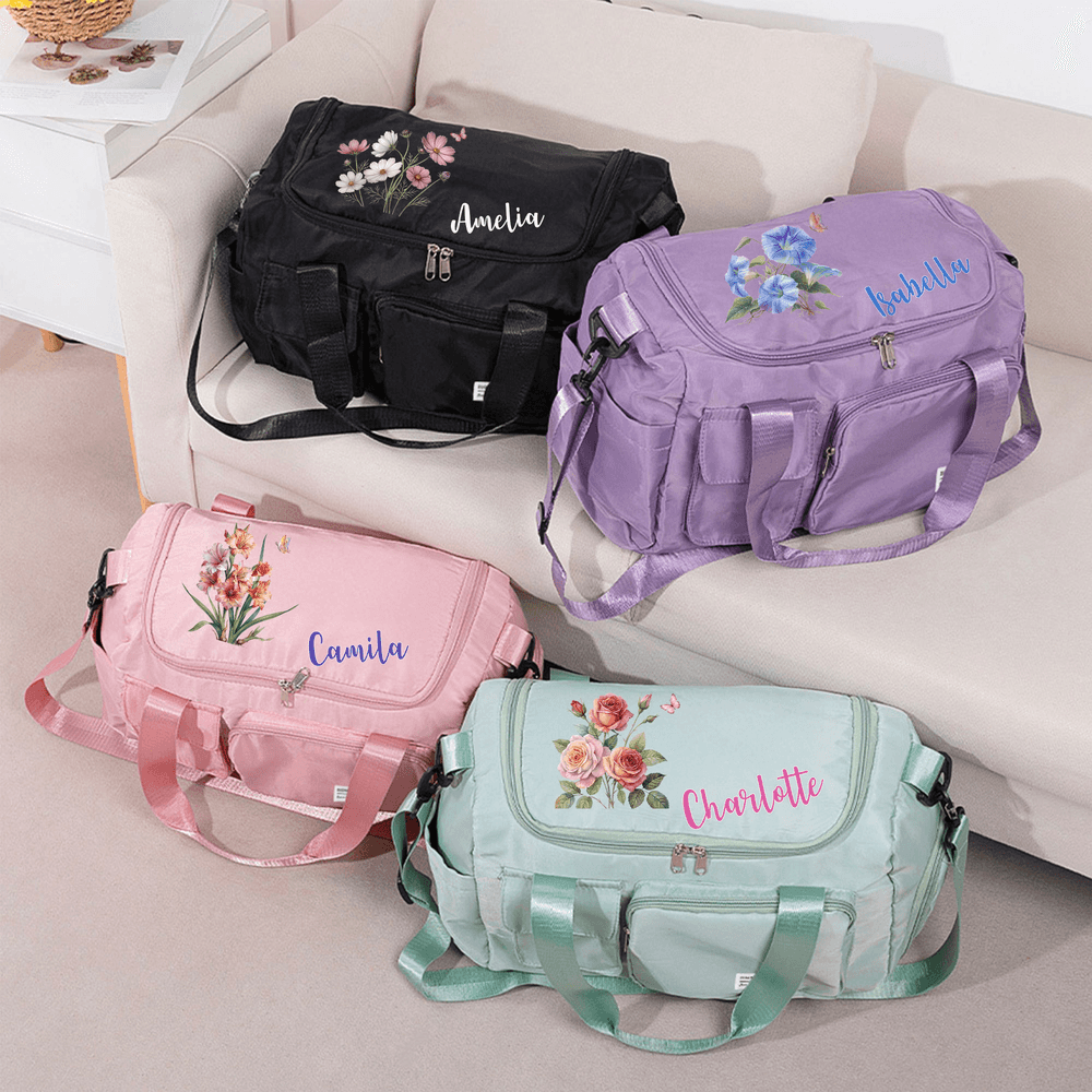 Personalized Birth Flower Multi-Compartment Large Travel Bag with Name and Shoulder Strap Travel Birthday Gift for Women