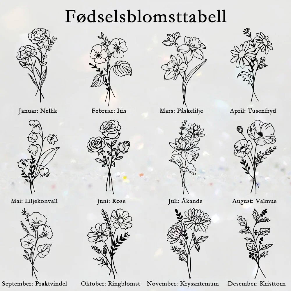 Medaljongen er dekorert med en fødselsblomst som symboliserer hennes unike fødselsmåned. Det graverte navnet gir et personlig preg og gjør gaven helt spesiell.