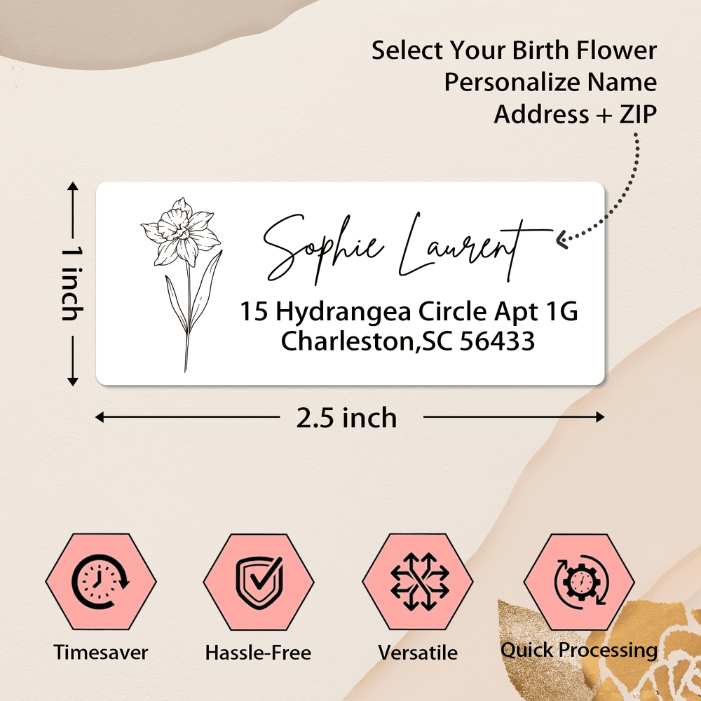 Disse personlige klistremerkene med fødselsblomster er en omtenksom og unik gave til venner, familie og kolleger som elsker å sende håndskrevne brev eller pakker. Med navn, adresse og den eksklusive fødselsblomsten får de et personlig preg som generiske etiketter ikke kan matche. Det er en ideell gave til innflytting, konfirmasjon, morsdag eller som en praktisk gave til kontoret. Overrask dine kjære med en gave som kombinerer sentimentalitet med hverdagslig nytte.