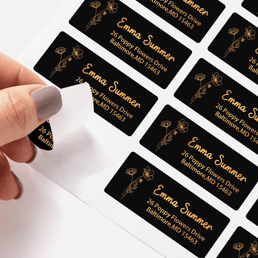 Disse etikettene er laget av førsteklasses bestrøket papir og er vanntette og flekkfrie, noe som sikrer at det gylne eller svarte trykket forblir skarpt selv i regnvær eller under transport. Klistremerkene er slitesterke og motstandsdyktige mot rynker. Det sterke klebemiddelet på baksiden gir langvarig klebeevne som fester seg godt på konvolutter, pappesker og plastemballasje uten å etterlate rester.