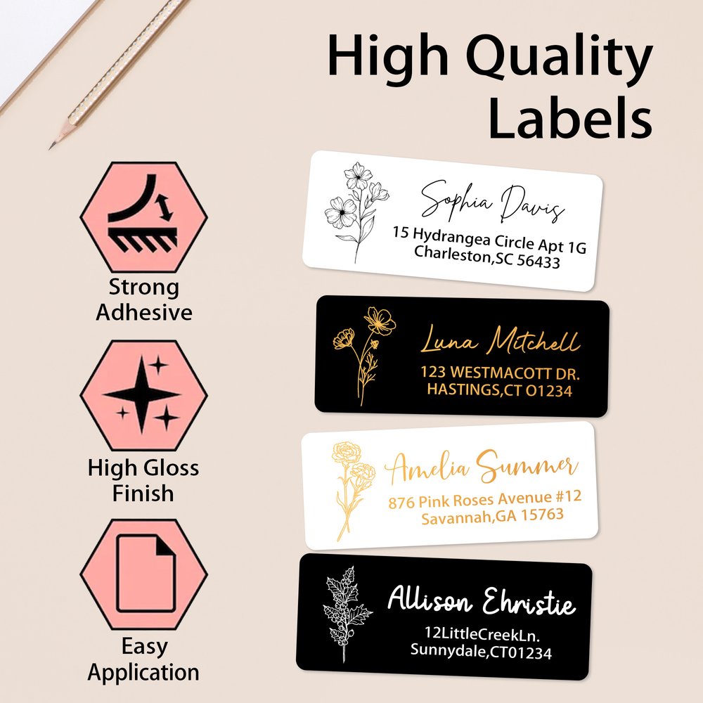 Hvert klistremerke er designet i serien med fødselsblomster, og hvert klistremerke er utstyrt med et delikat blomstermønster som korresponderer med fødselsmåneden din, noe som gjør at posten din skiller seg ut i postkassen. Kombinasjonen av elegant skrifttype og rene blokkbokstaver sikrer både estetisk appell og lesbarhet. Hver etikett er laget med presis halvskjæringsteknologi, og hver etikett kan enkelt løsnes fra A4-arket uten å rives av, klar til øyeblikkelig bruk.