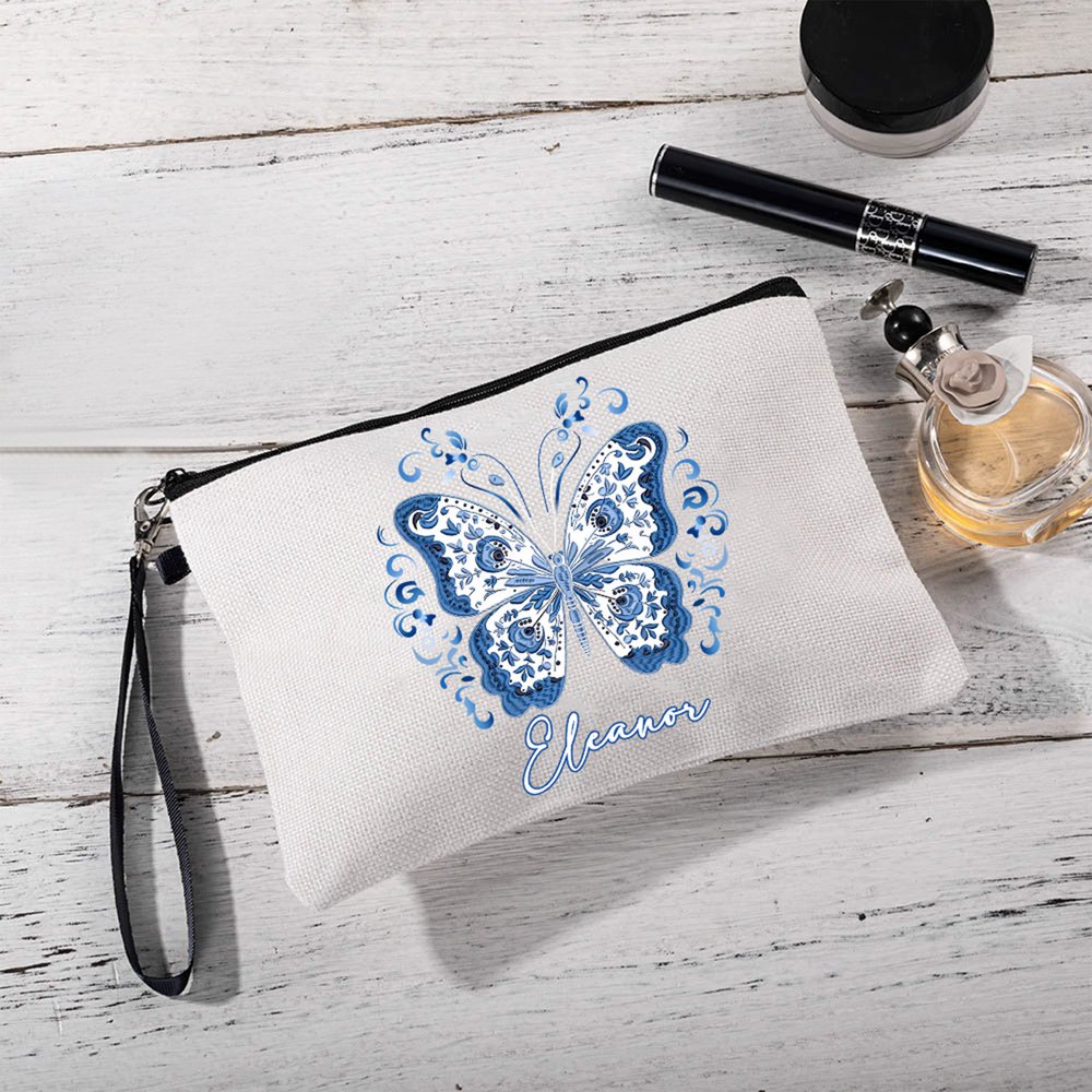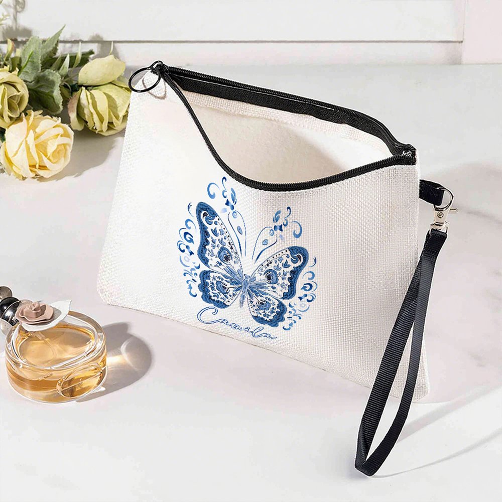 With exquisite butterfly patterns as the core design element, paired with customizable names, the overall style is both fresh and delicate. The butterfly shape is lively and graceful, and the color scheme matches women's aesthetics. The customized name gives the makeup bag a unique identity, making it not only a storage tool but also a fashion accessory that shows personal taste and exclusivity, adding an elegant touch to everyday outfits.