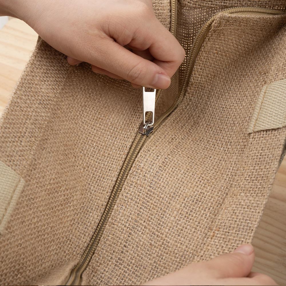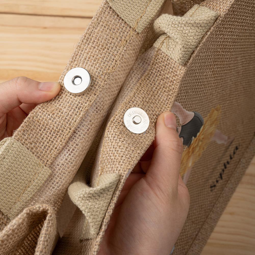This bag is made of eco-friendly jute, a sustainable alternative to plastic or synthetic materials. Jute is biodegradable, renewable, and durable, making it an excellent choice for environmentally friendly consumers. This bag comes in three styles: zipper, hidden magnetic button, and open regular style. These styles adhere to natural materials, appealing to those who prioritize sustainability in their daily lives.
