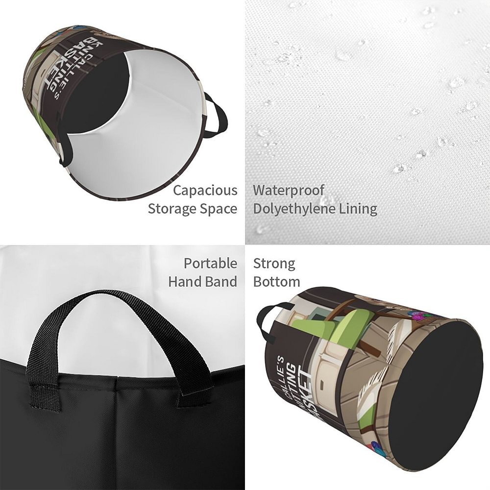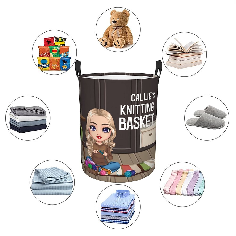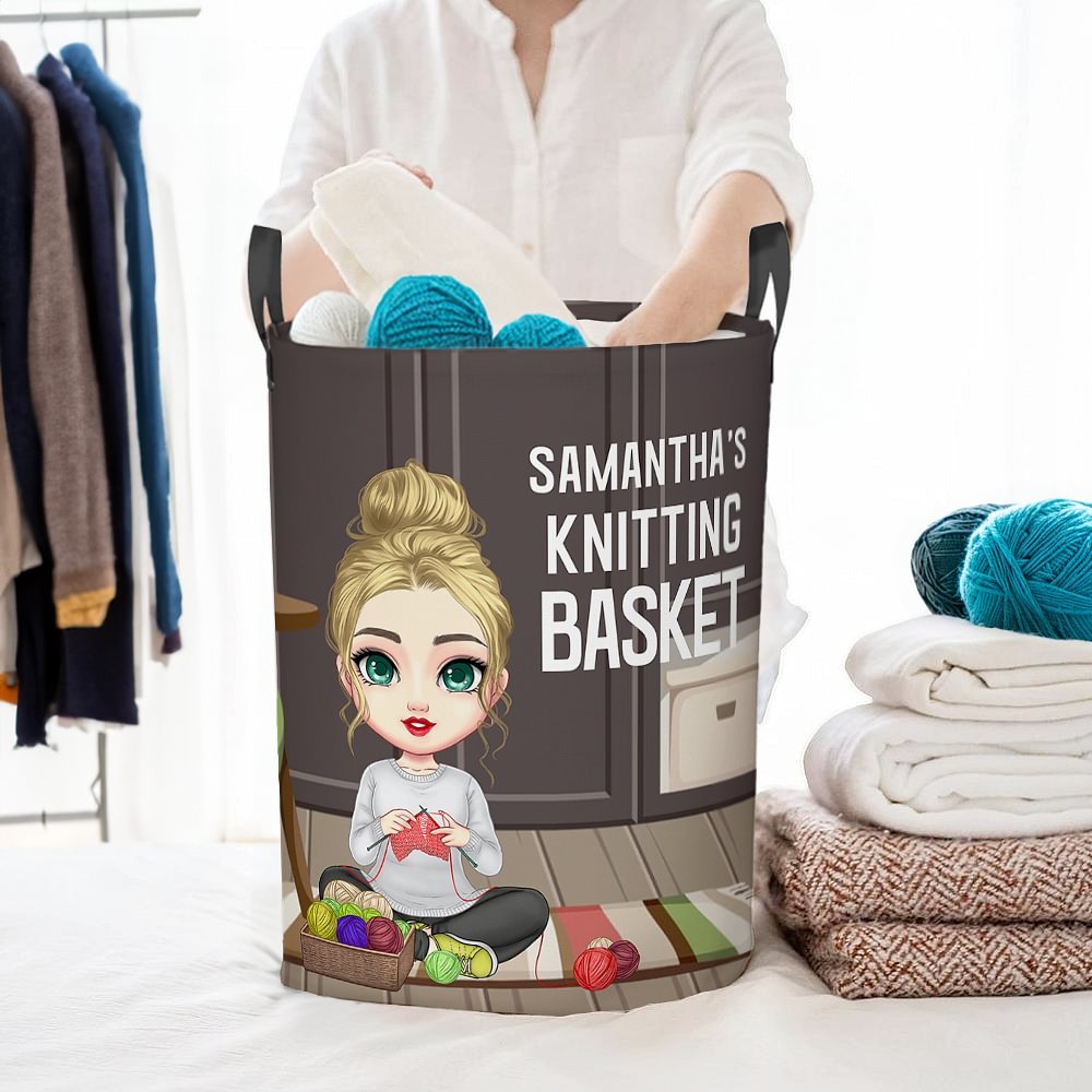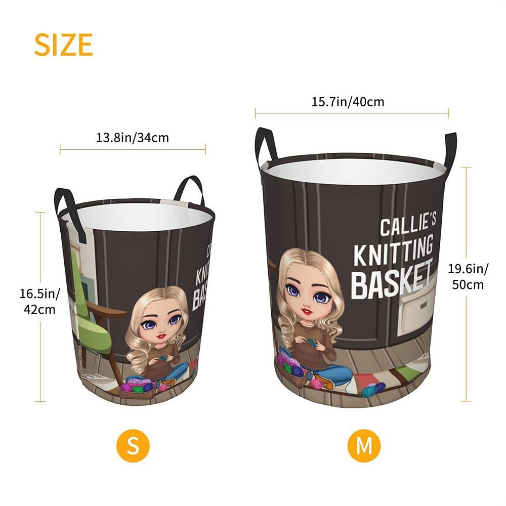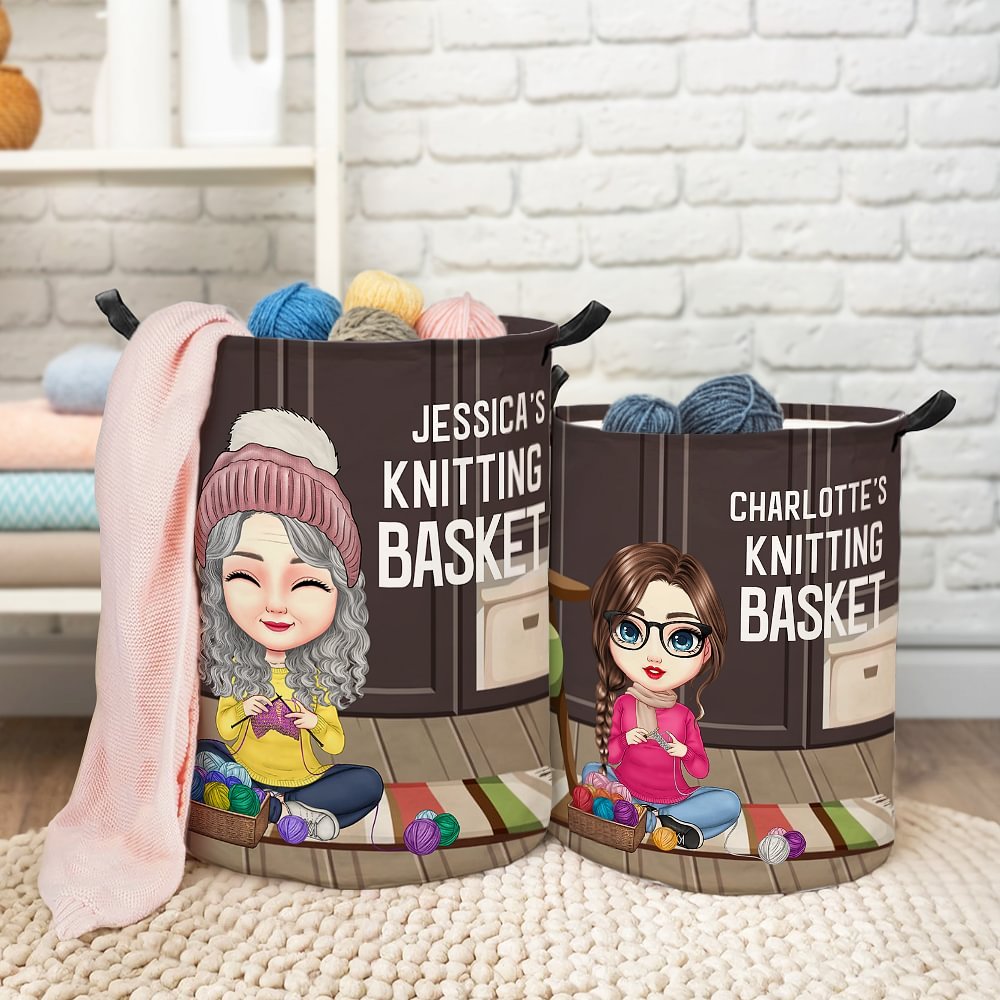 This stylish and retro storage basket features a cartoon character design of a cozy and comfortable woman sitting on a carpet knitting. You can customize your name on it to add a unique touch, showing your passion for knitting and superb crochet skills.
