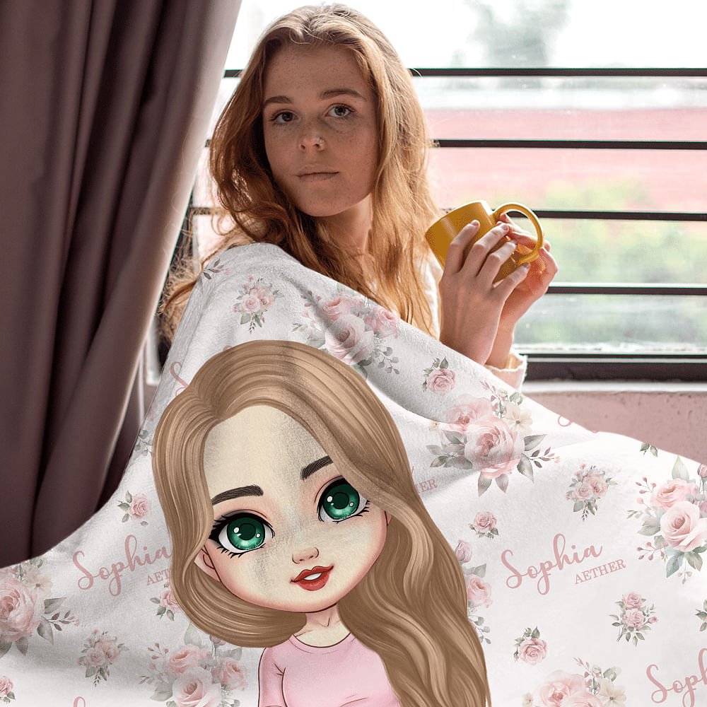 This blanket features unique cartoon character designs, each carefully drawn to your liking. The pink floral pattern adds a touch of elegance to the blanket. The customized name gives this blanket exclusive emotional sustenance so that everyone who has it can feel the unique care and warmth.