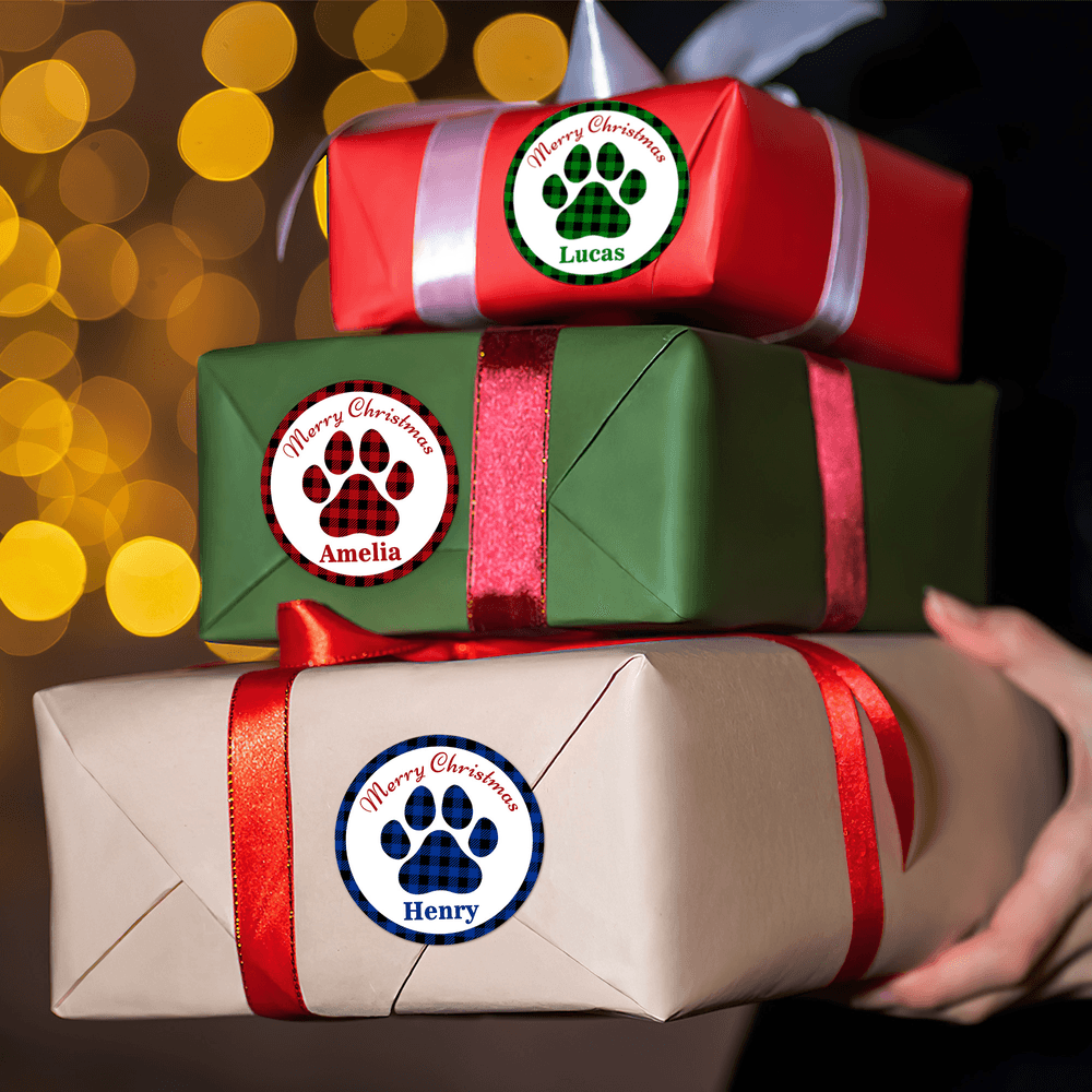 These personalized stickers make a fantastic gift for pet owners, pet lovers, and anyone who enjoys festive, customized touches. Ideal for Christmas, they add a thoughtful and unique element to gifts for friends and family. The combination of Christmas paw prints and personalized names shows your care and attention to detail, making the recipients feel special and cherished during the holiday season.