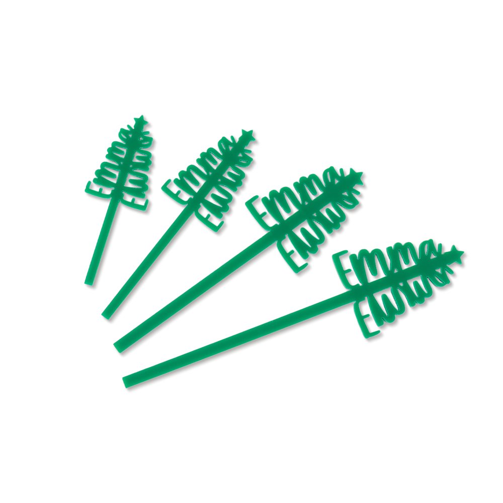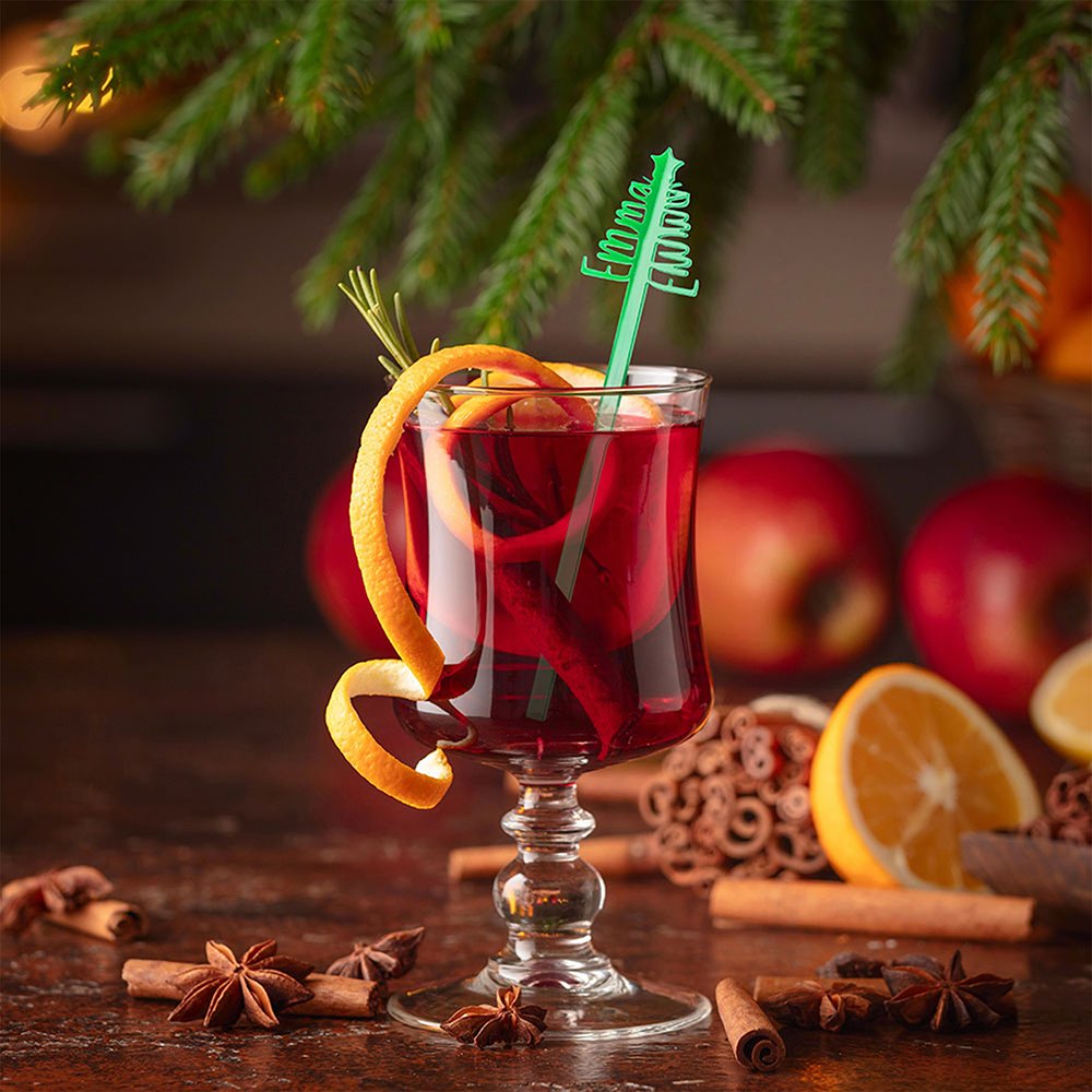 Cocktail sticks are a unique and fun addition to your Christmas party. The letters of your name are arranged in descending order to form the shape of a Christmas tree, adding a festive touch to your drinks and decorations.