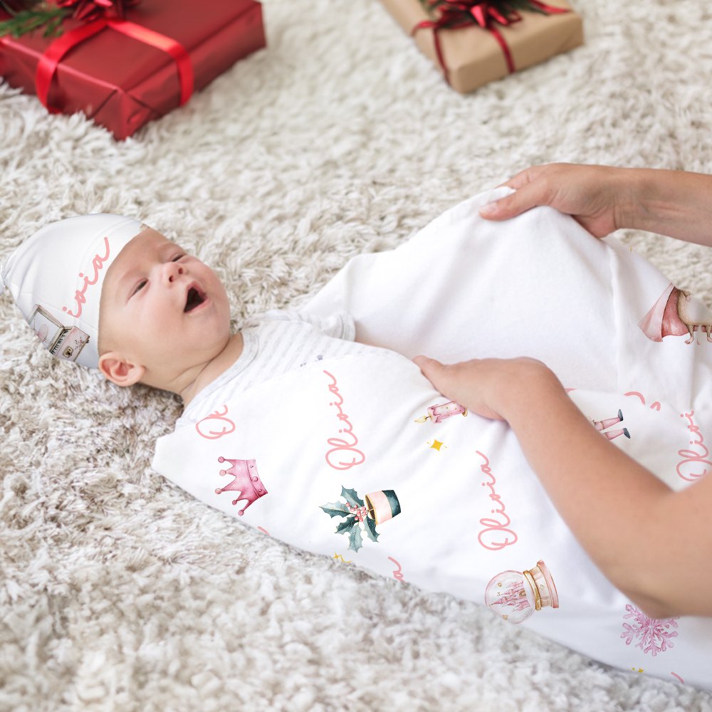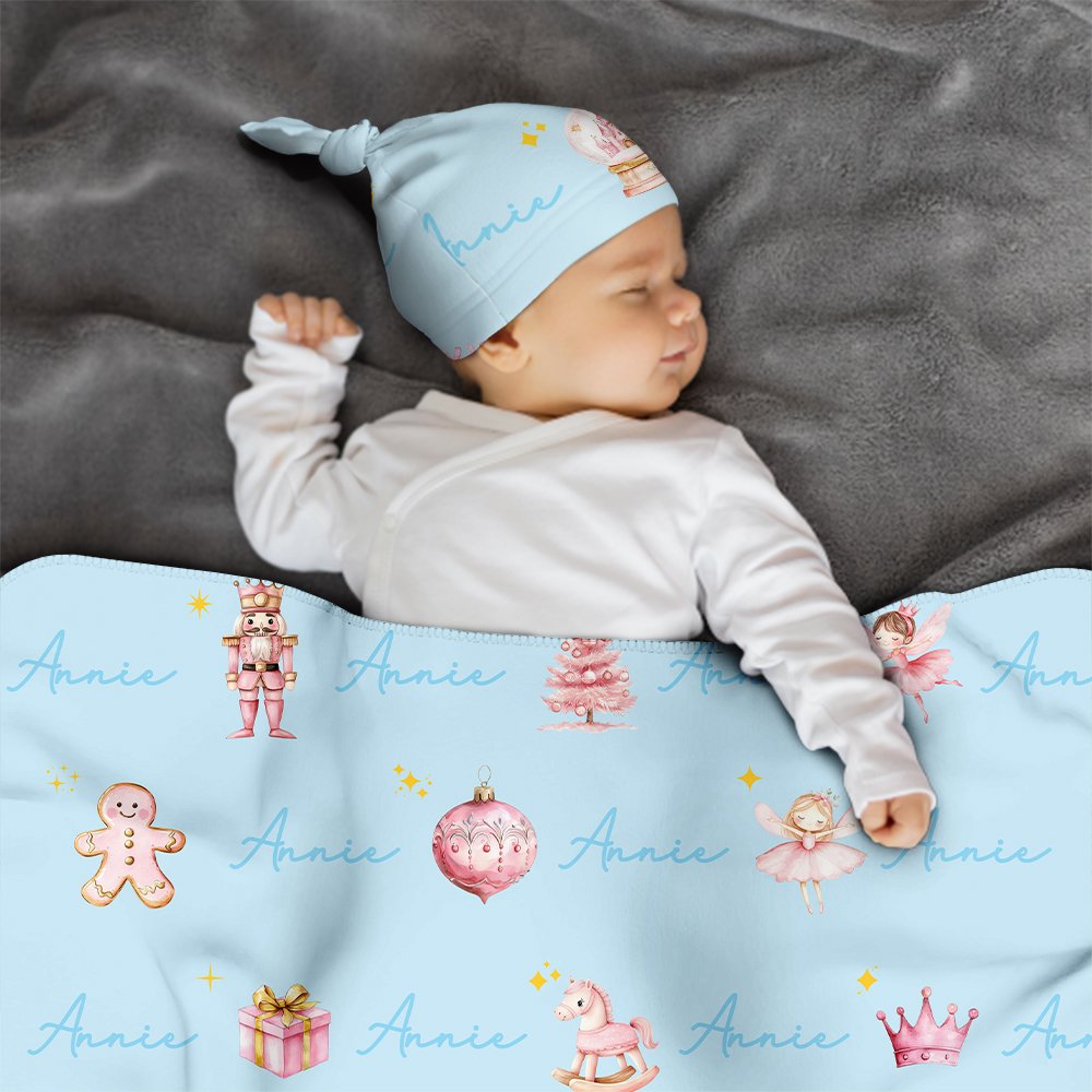 This baby set includes a swaddle and a hat, designed with classic fairy tale characters, using a healing style and warm tones. You can add your child's name to the set, and this unique design element adds a touch of charm, making it a delightful home essential for any occasion.