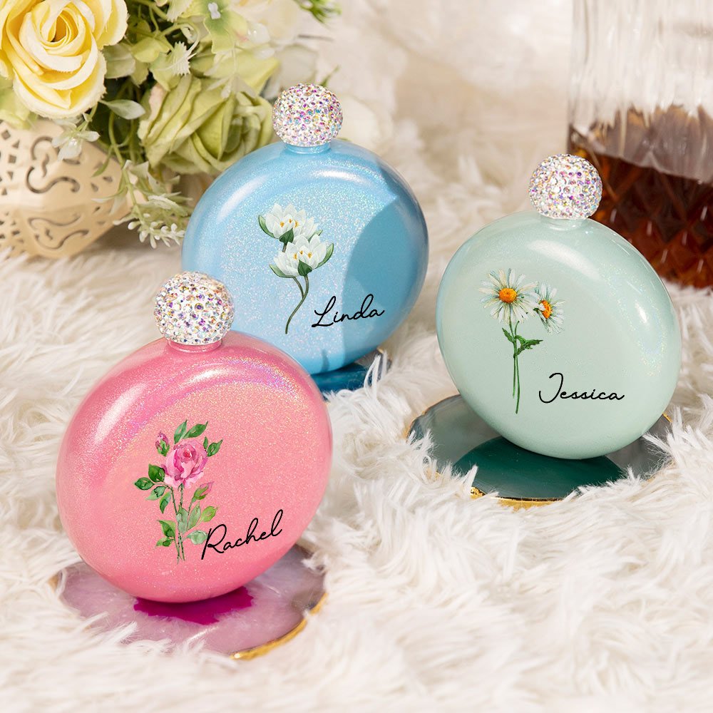 Overrask og gled kvinnene i livet ditt med denne lommelærken. Kombinasjonen av den unike designen, den glitrende overflaten, lokket med rhinestone og det inngraverte navnet gjør den til en gjennomtenkt og kjær gave til bursdager, brudepikefrierier eller andre spesielle anledninger. Gi en ekstra gaveopplevelse med denne stilige og personlige flasken som kombinerer glamour med sentimentalitet.