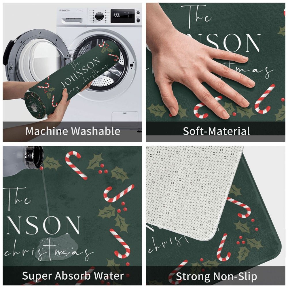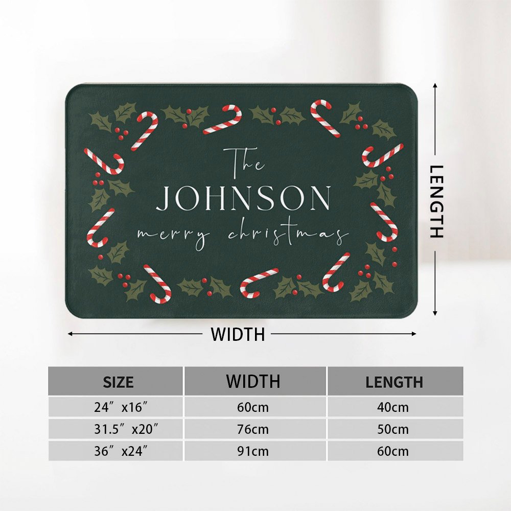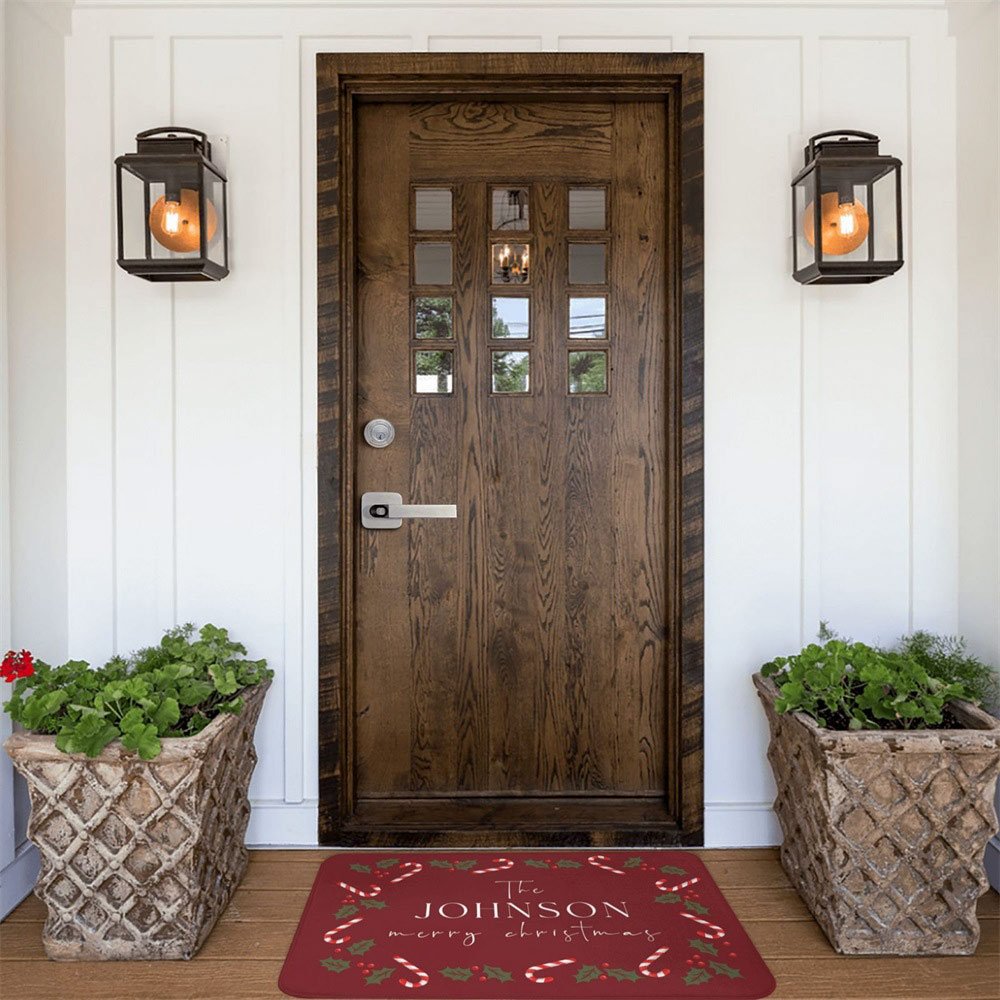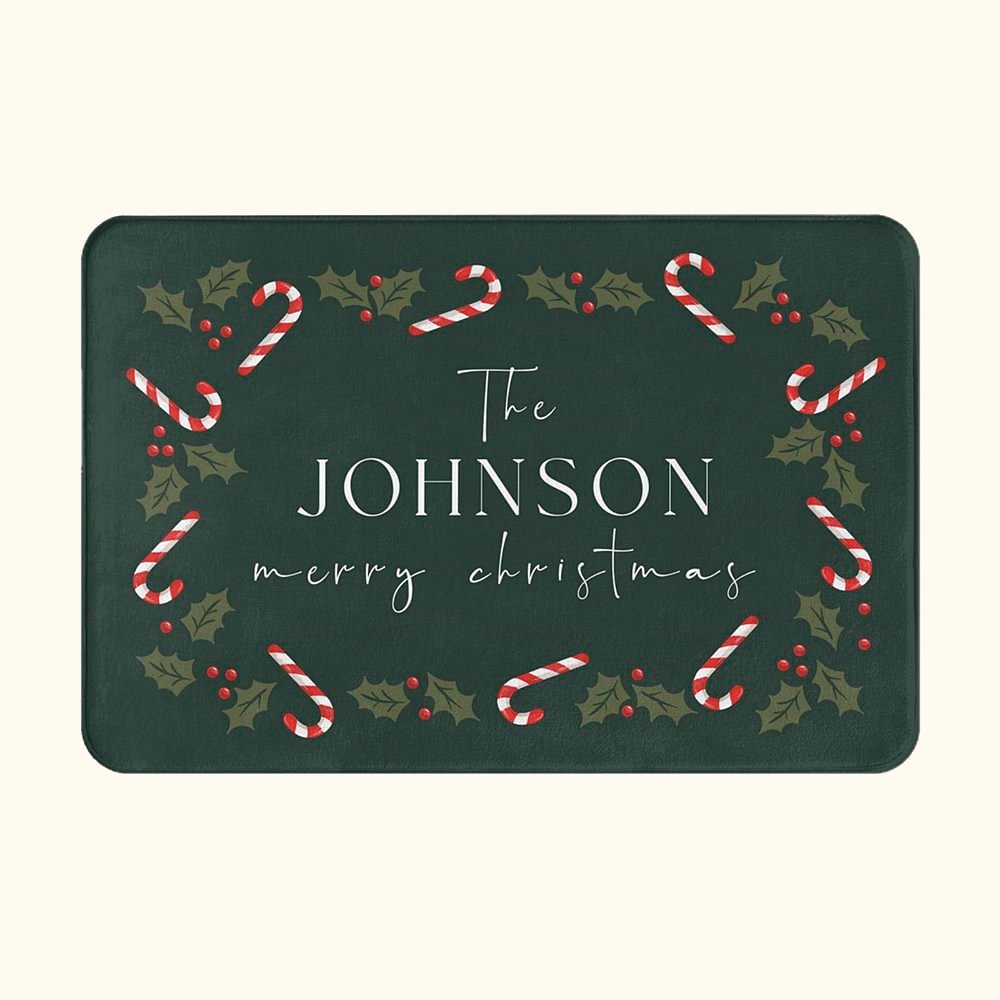 With its vibrant colors and charming candy cane design, this doormat adds a cheerful touch to any doorstep during the holiday season. The personalization option makes it a unique and heartwarming gift.