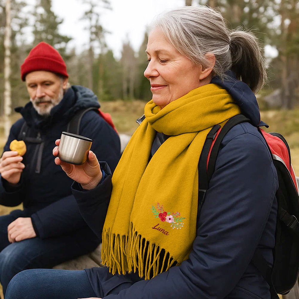 This scarf is the perfect gift for any woman, whether it's a friend, sister, mother, or girlfriend. Whether it's a birthday, Christmas, New Year's Day, an anniversary, or Women's Day, this scarf will convey your heartfelt wishes. The floral pattern symbolizes vitality, and the custom embroidery conveys personal care, leaving the recipient feeling warm and appreciative of the gift-giver's thoughtfulness.