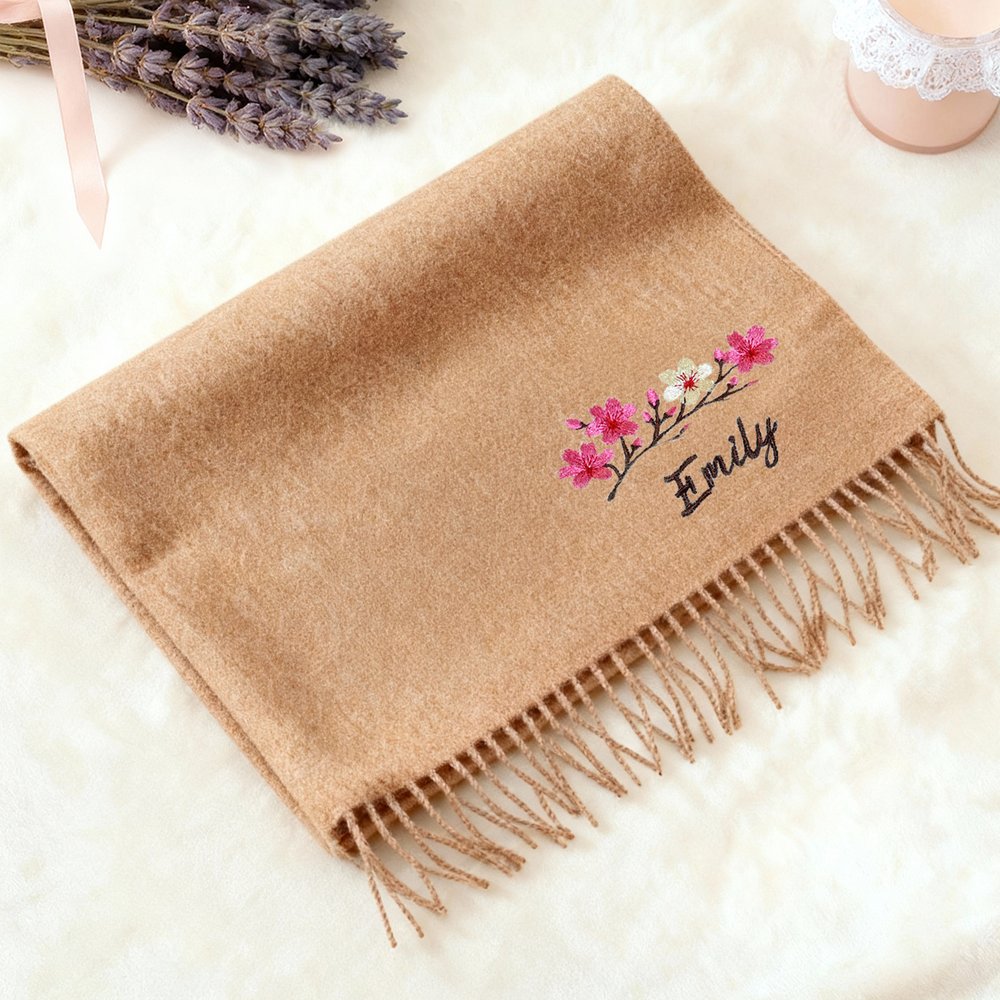 This scarf is the perfect gift for any woman, whether it's a friend, sister, mother, or girlfriend. Whether it's a birthday, Christmas, New Year's Day, an anniversary, or Women's Day, this scarf will convey your heartfelt wishes. The floral pattern symbolizes vitality, and the custom embroidery conveys personal care, leaving the recipient feeling warm and appreciative of the gift-giver's thoughtfulness.