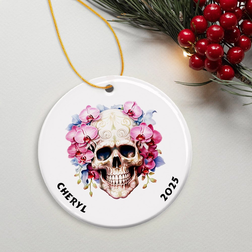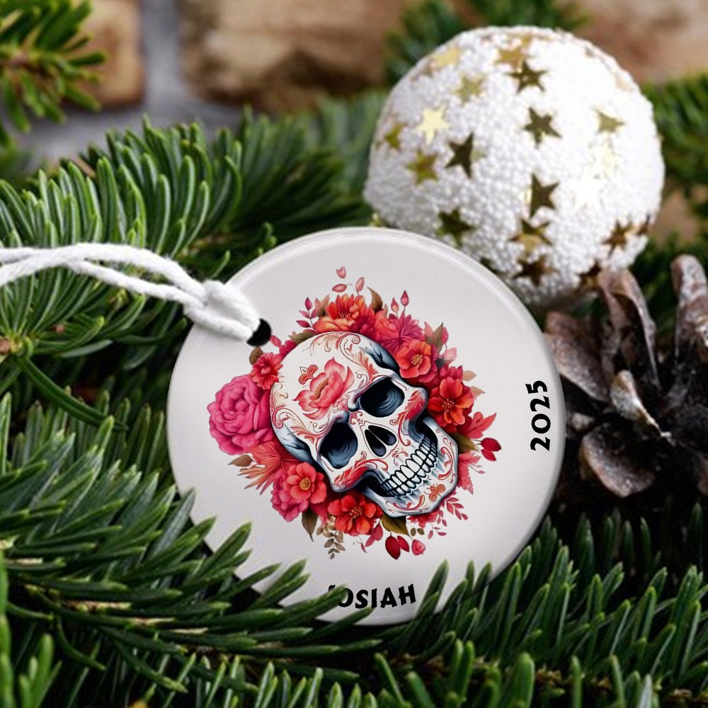 This charming ornament is a true masterpiece that showcases the whimsical and vibrant spirit of the Day of the Dead celebration. The delightful skull is paired with birthday flowers to create a unique and playful image that perfectly captures the joy and cultural richness of this beloved holiday.