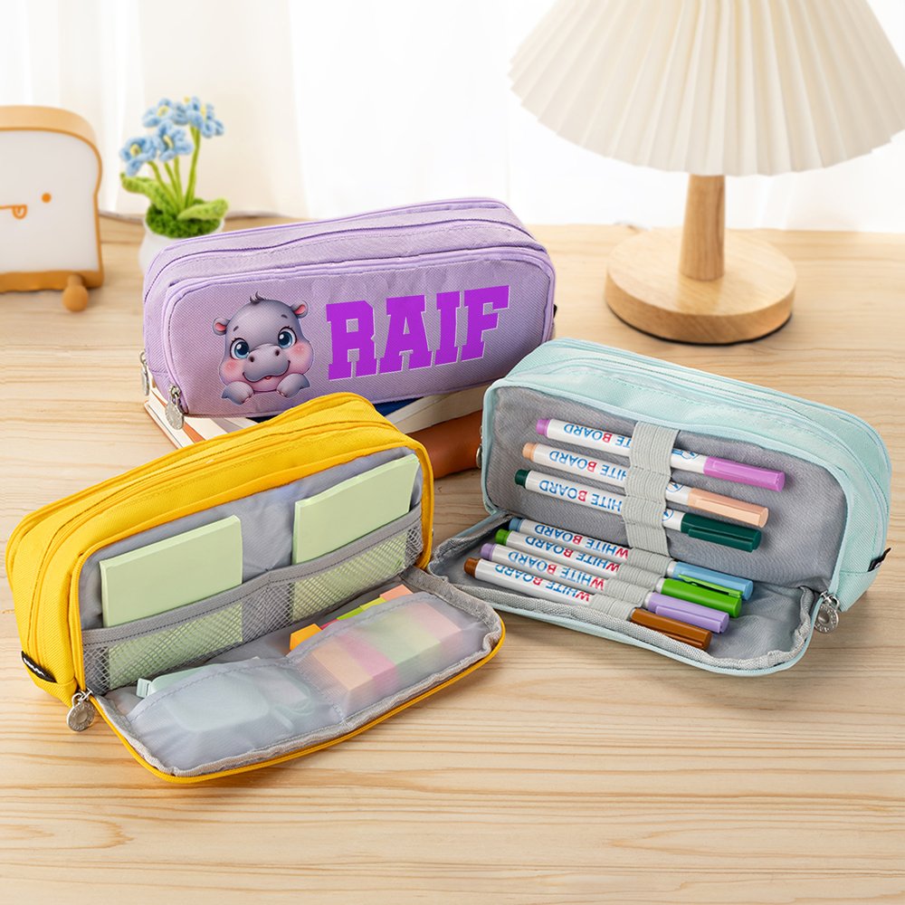 Choose the pencil case color (6 colors like black, pink), cute cartoon animals(such as tiger, bear, and fantasy unicorn), 4 font styles, and print exclusive names. Integrate kids’ favorite animal friends and unique names into the case—turning ordinary stationery into a “personalized space”.
