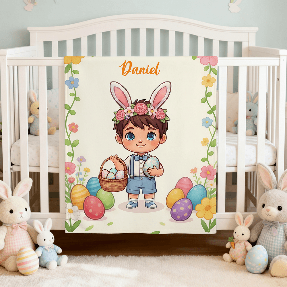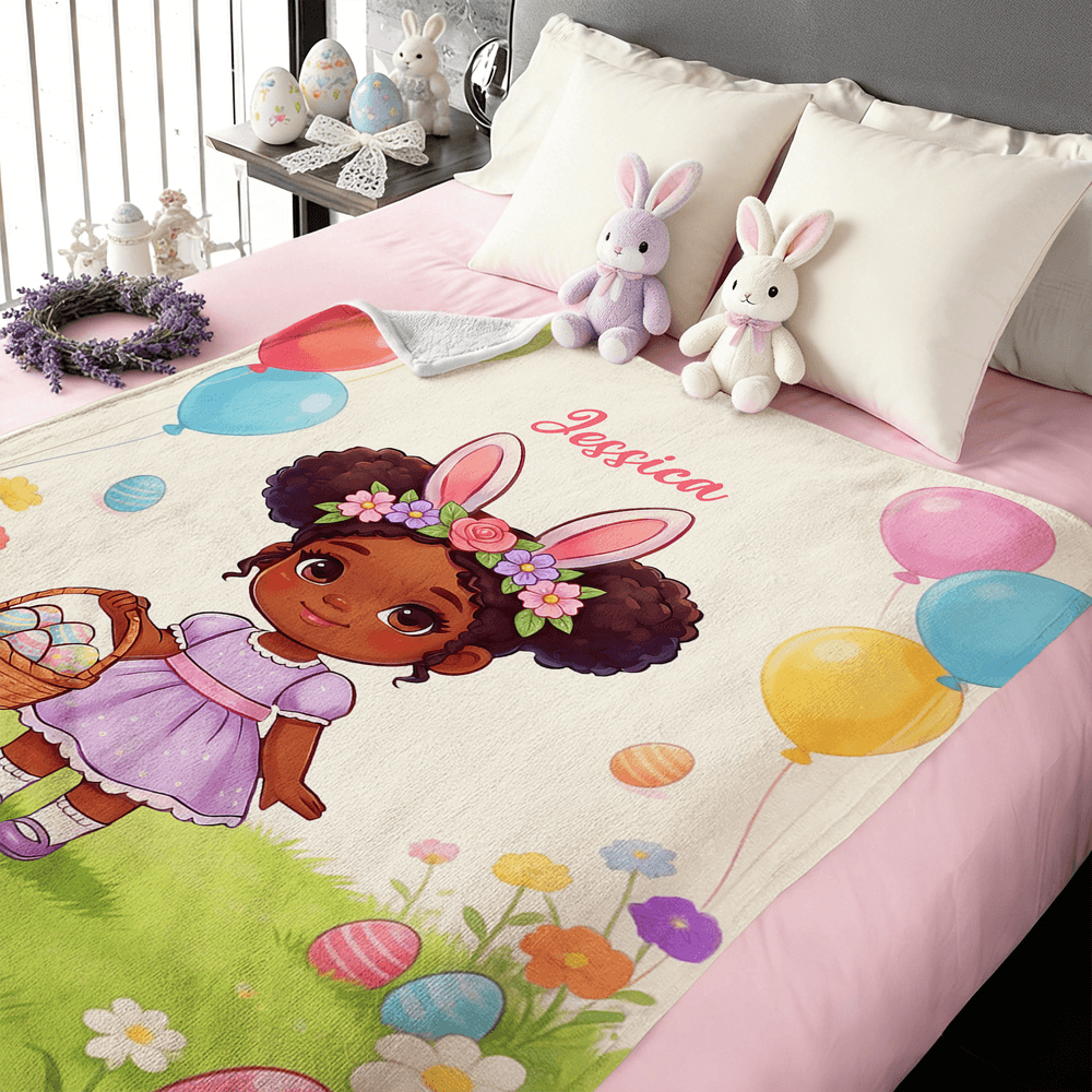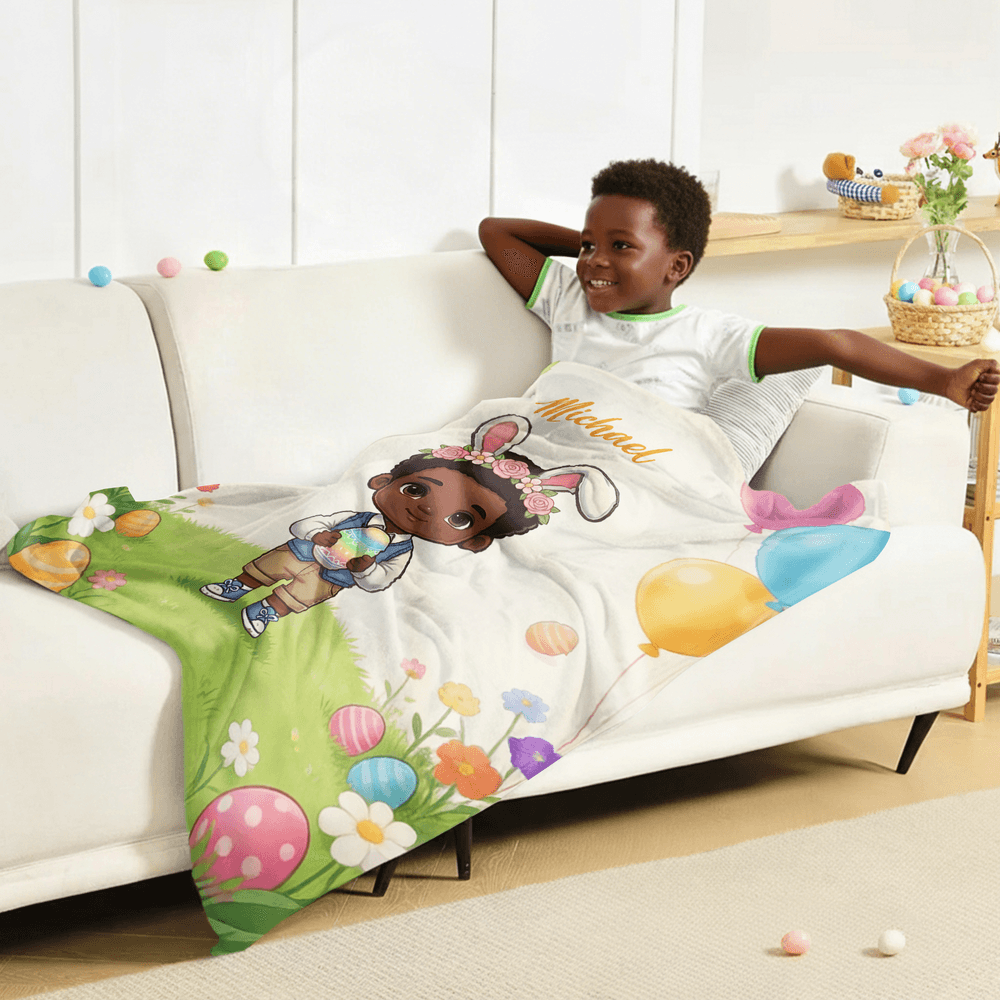 Personalized Cute Character Easter Egg Soft Throw Blanket with Name Home Use Easter Gift for Boys Girls