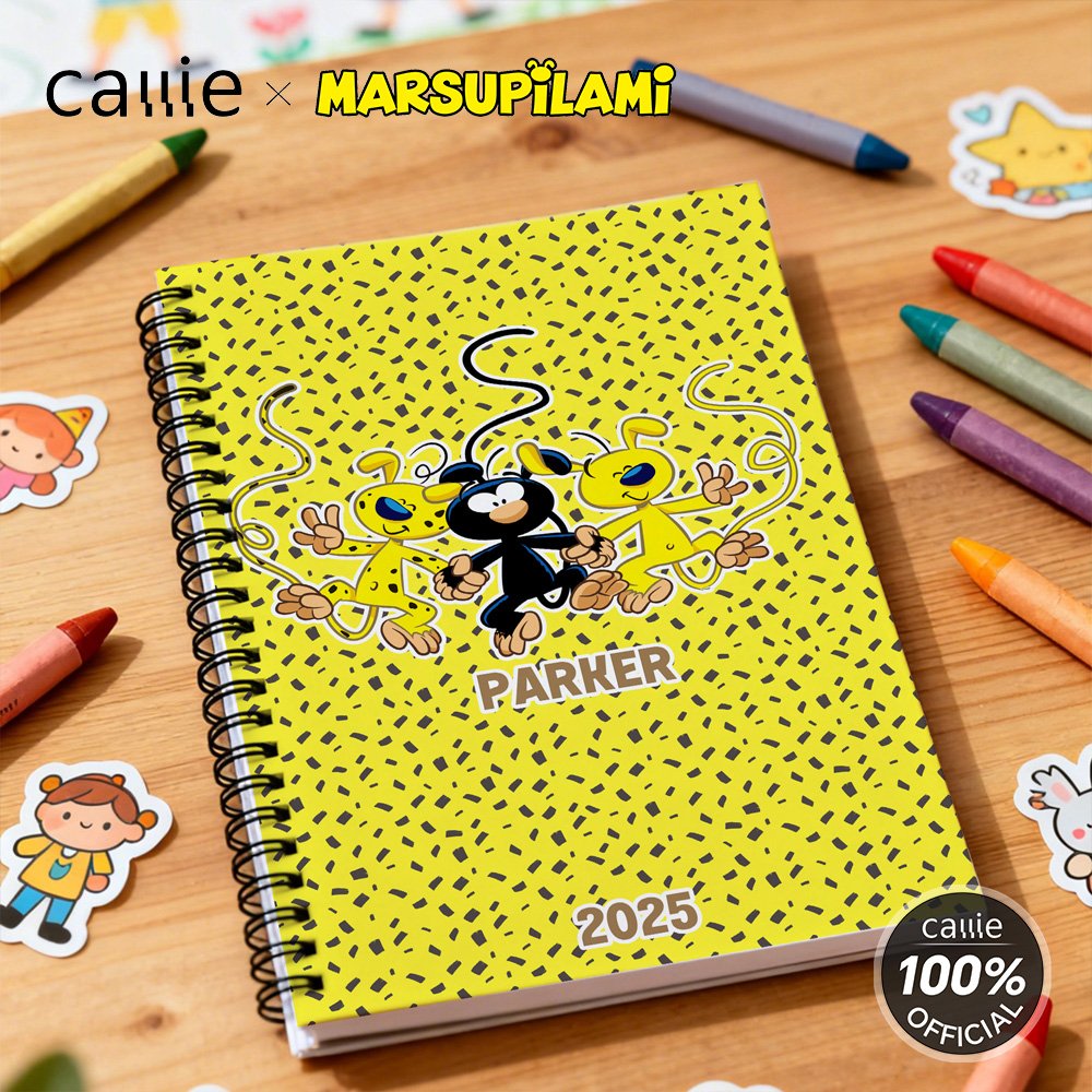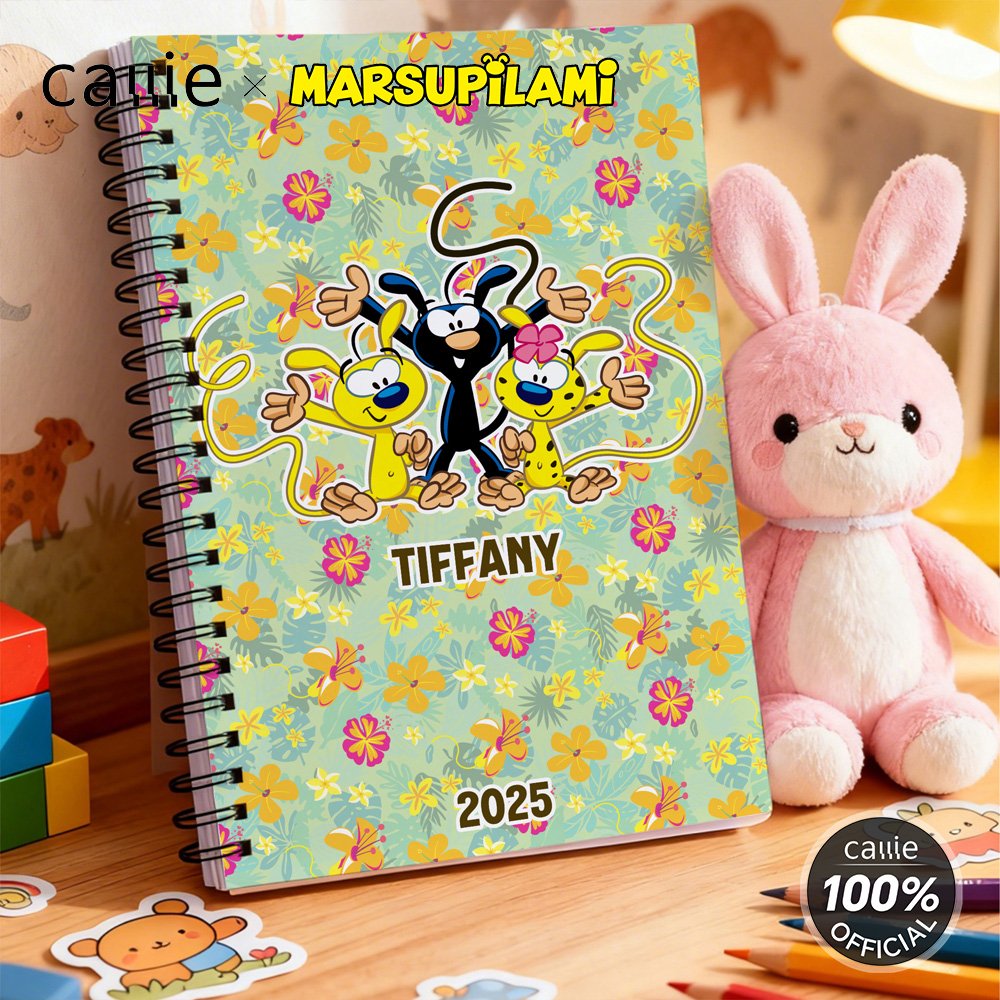 This notebook uses Marsupilami, a long-tailed leopard, as the core design element. Marsupilami is a jungle-dwelling animal with yellow fur, black spots, and a super-flexible, long tail. Its big eyes and rich expressions are very friendly. Paired with a customizable name and year, it combines cuteness and childlike fun with a sense of exclusivity.