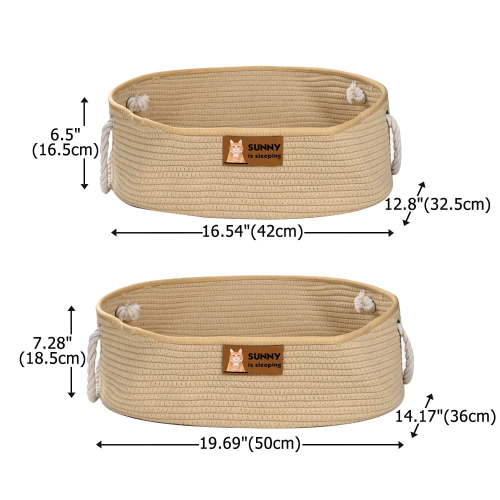 The rattan is made of high-quality rattan weaving technology and cotton and linen materials, which are tough and not easy to break. The hand-woven fabric is tight and fashionable, durable and wear-resistant, not easy to collapse, and conforms to the scratching instinct of cats. Cotton and linen pads are soft and skin-friendly, full of elasticity, and will not irritate pet skin. This material is breathable and moisture-proof, cool and not stuffy for summer use, and warm and comfortable for winter use with padding.