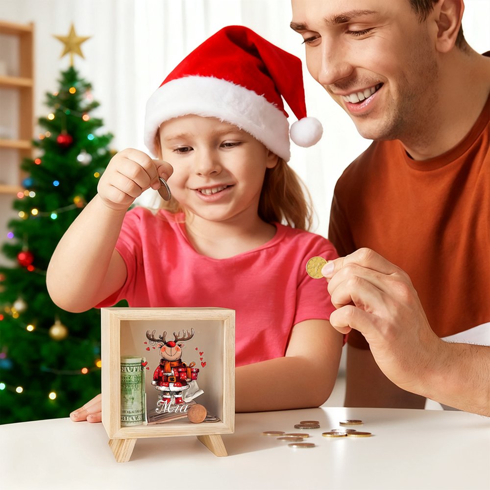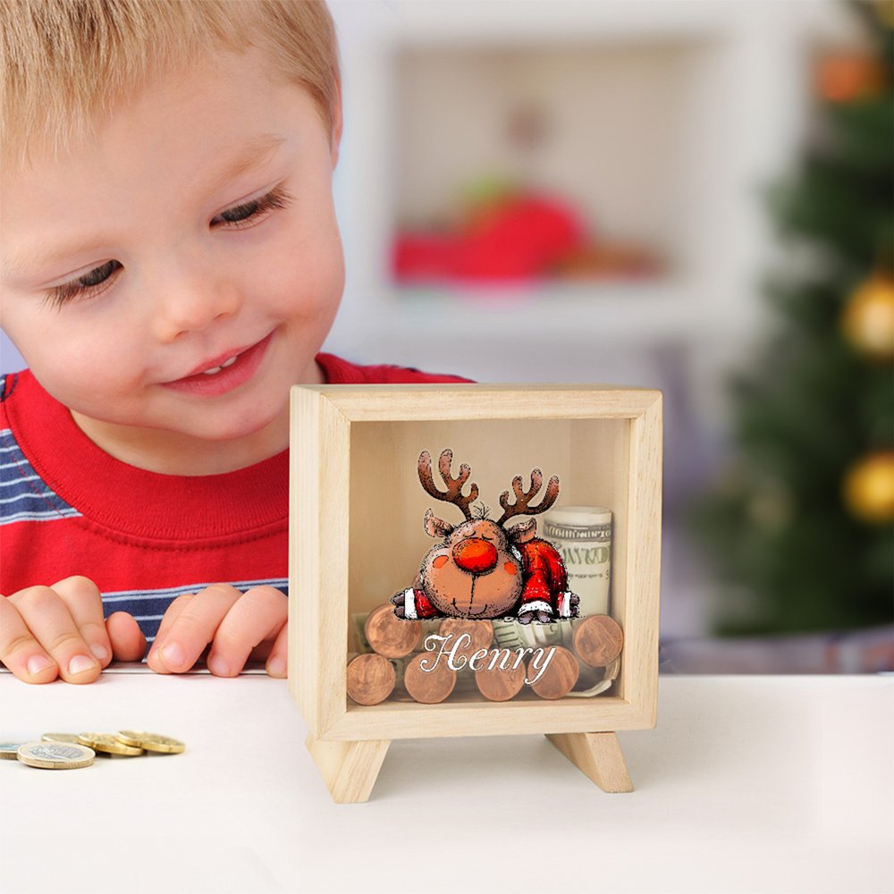 This money box takes inspiration from a warm reindeer design, perfectly capturing the joyful spirit of the holiday season. The adorable reindeer shape not only attracts children's attention but also adds an element of fun to their savings process. You can personalize it with your child's name, making this savings bank a unique guardian of their wealth and sparking their interest in saving.