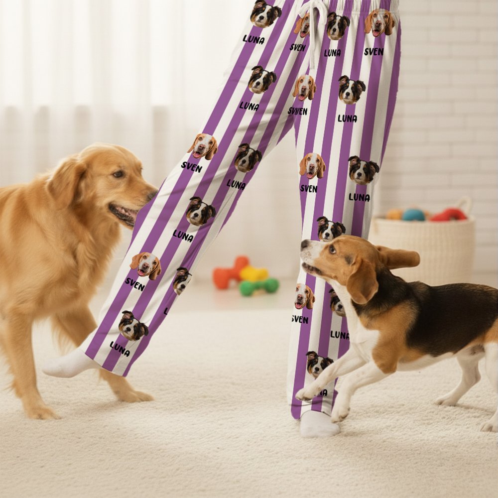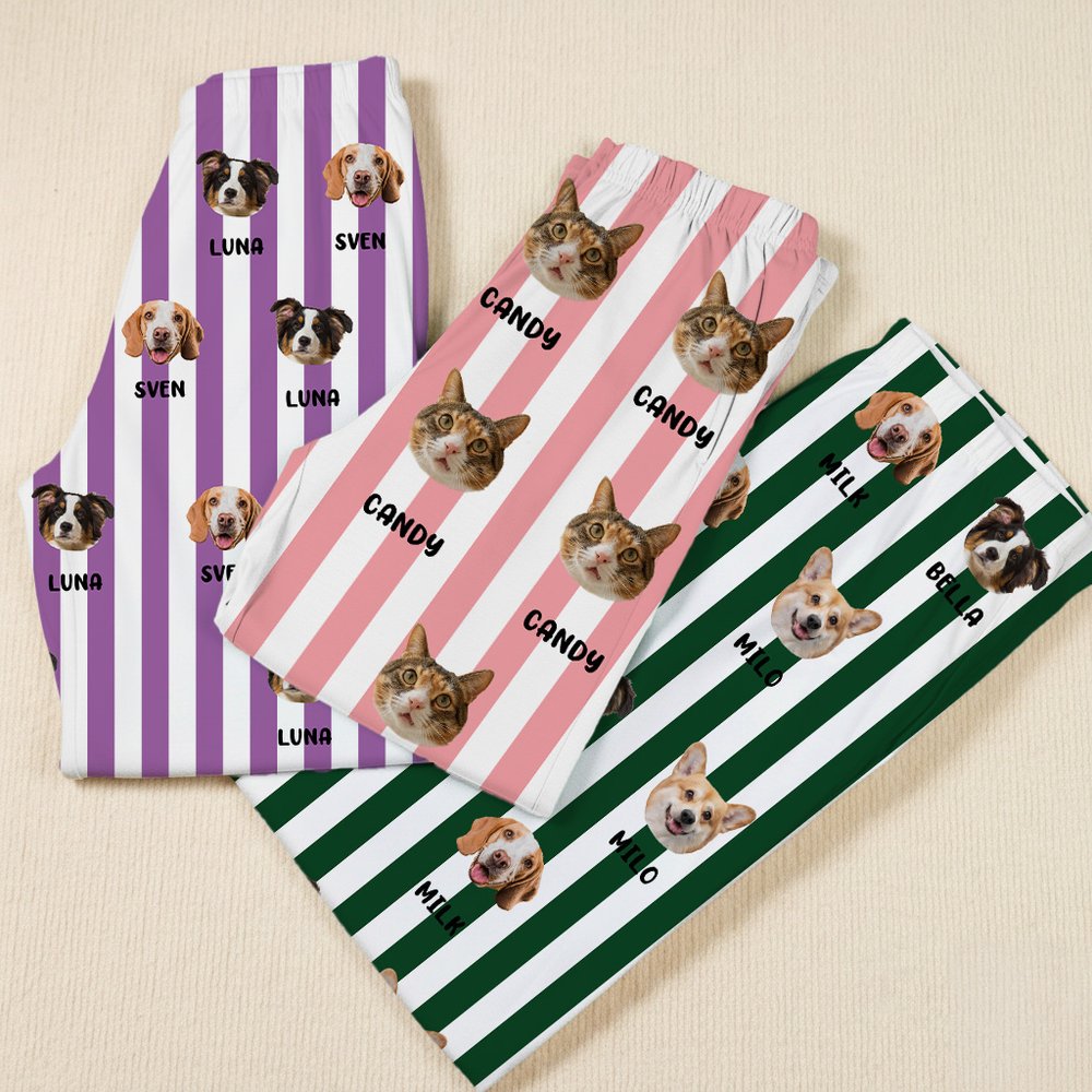 Our pajama pants come in 25 bright colors, classic striped patterns, and men's and women's styles. In addition, we also provide customized 1-5 dog or cat avatar photos. Your pet's cute face and name will be displayed on the pants, providing the best visual effect and creating a unique home outfit.