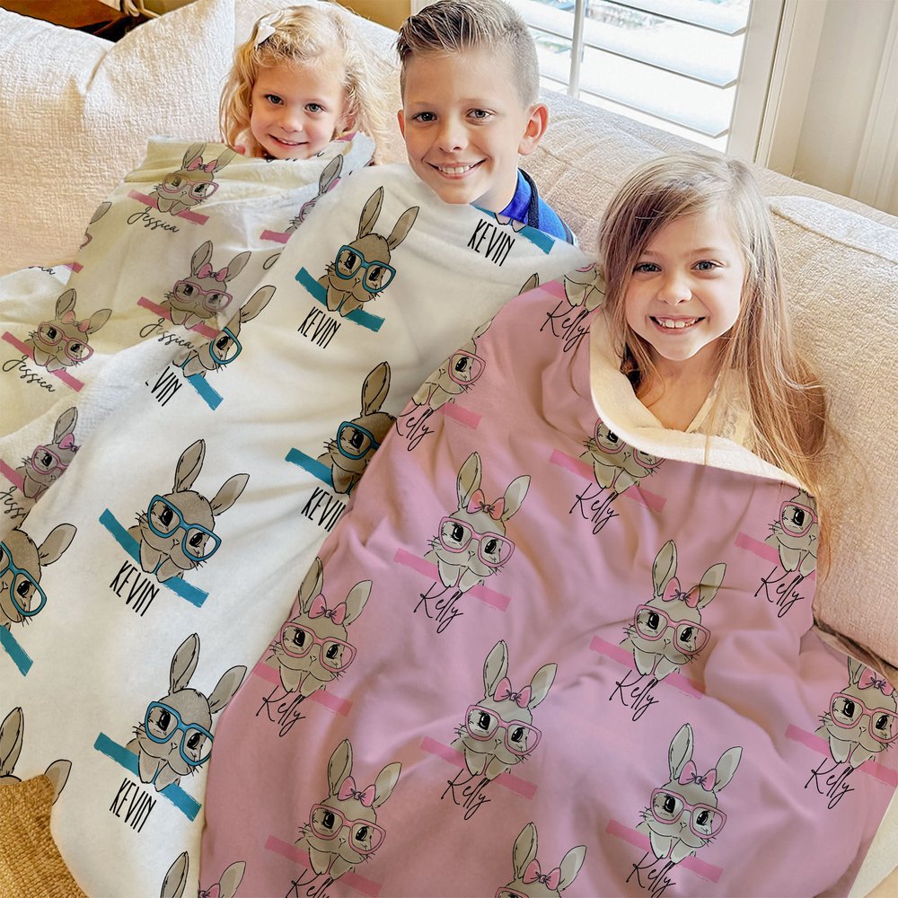 Drawing from the classic Easter bunny, this themed blanket captures the holiday's joyful spirit. Its charming bunny design radiates warmth, appealing to children and families alike. Personalization transforms it from a simple home item into a cherished keepsake, uniquely blending festive fun with personal meaning.