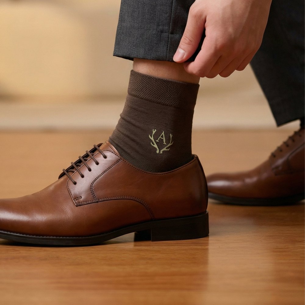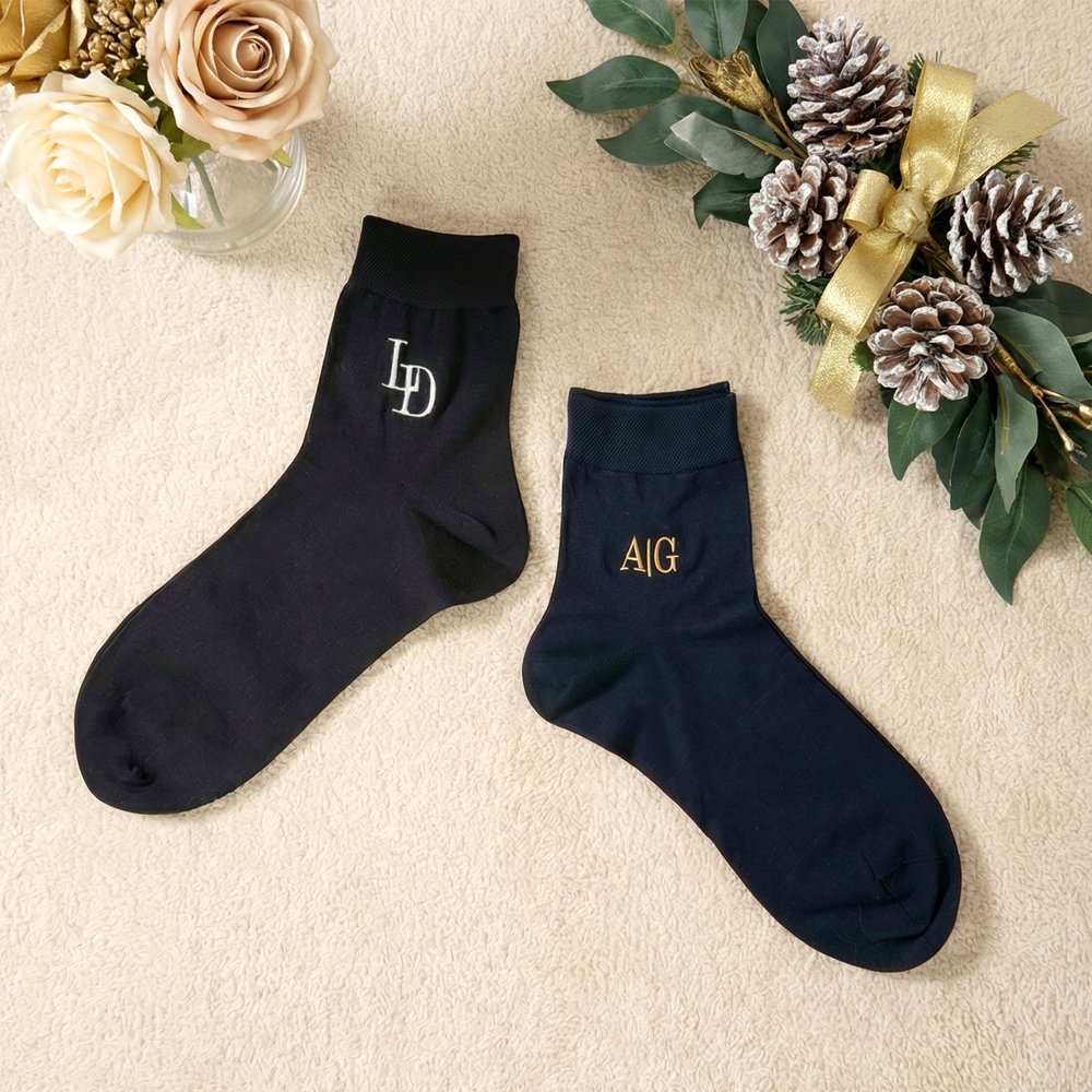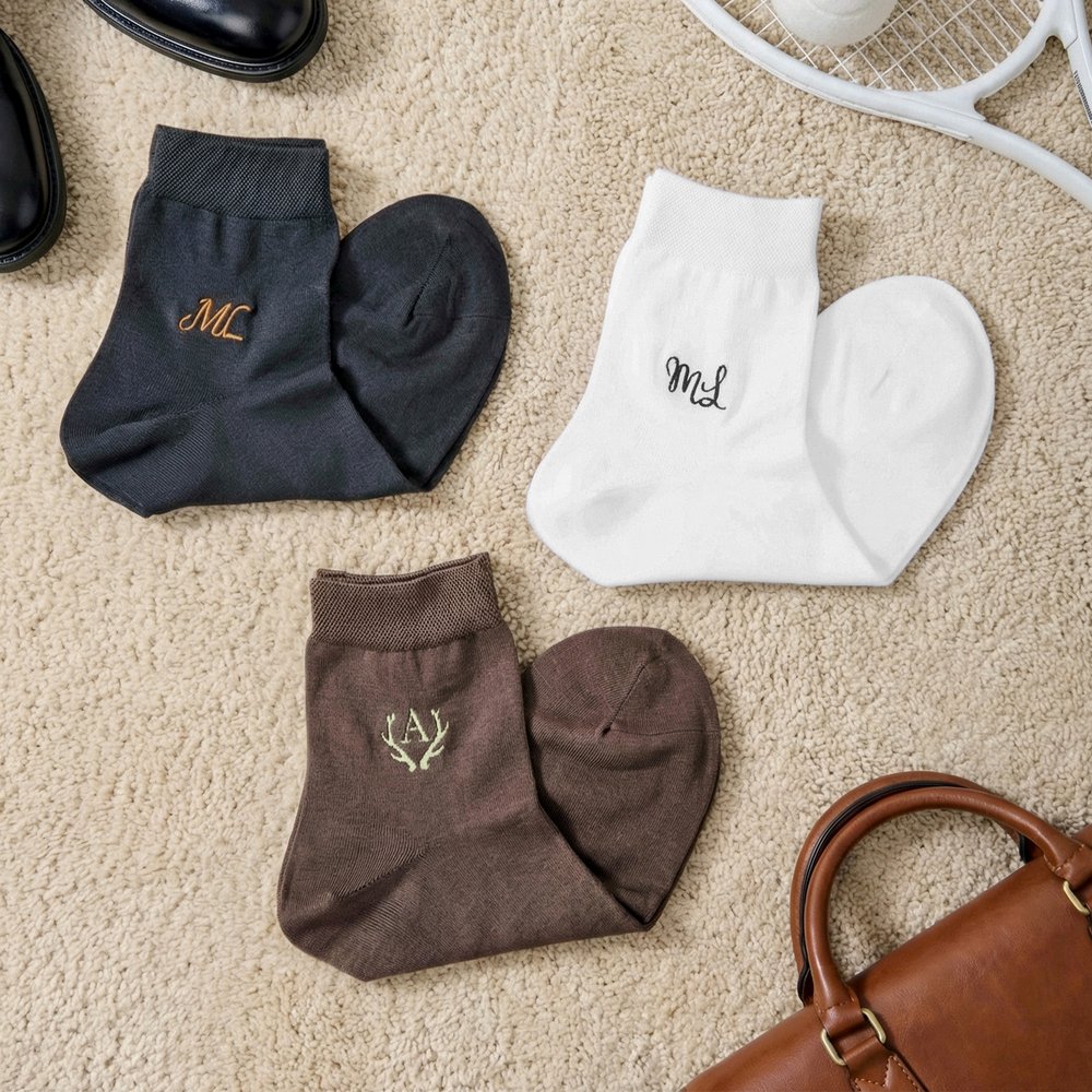 Personaliserte broderte monogram 100% bomullssokker for menn med navn Bryllupsfestgave til forretningsmann Officer Groomsman Groom