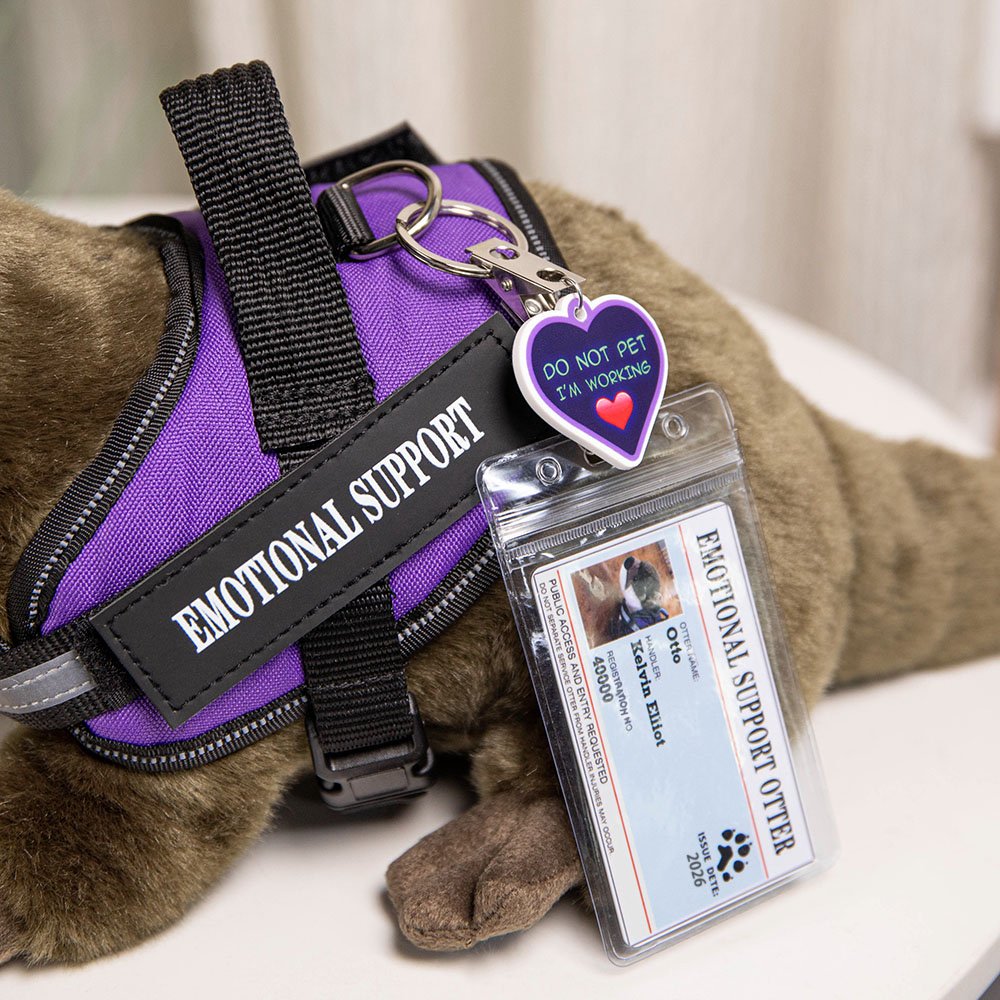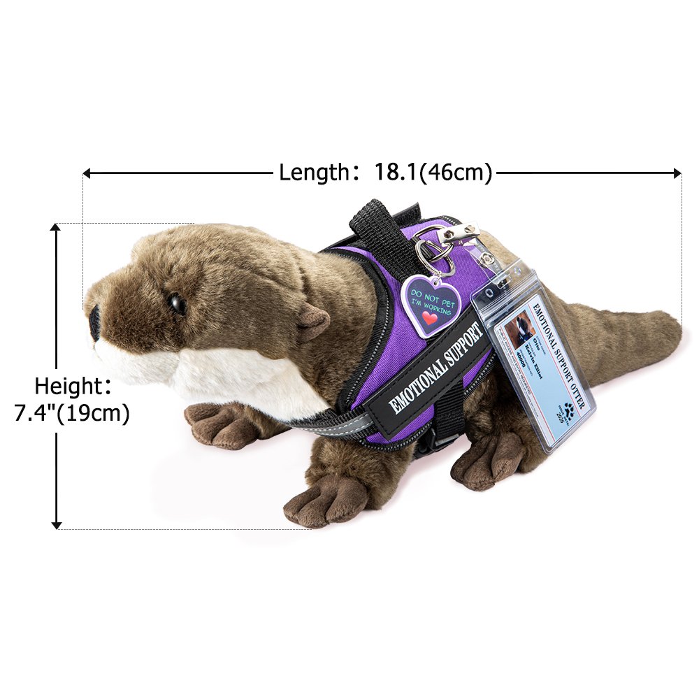 When you are surrounded by negative emotions, depressed, irritable, and sad, you need a cute stuffed otter plush toy to help you, ease your mood, and bring you comfort and a smile. Every detail restores the true appearance of the otter. The fur, eyes, and nose of the otter perfectly imitate the appearance of the real otter, and even with the ESA safety belt, it makes it look like a real trained otter operator. It also has a badge holder and a uniquely numbered personalized registration ID card on its body.