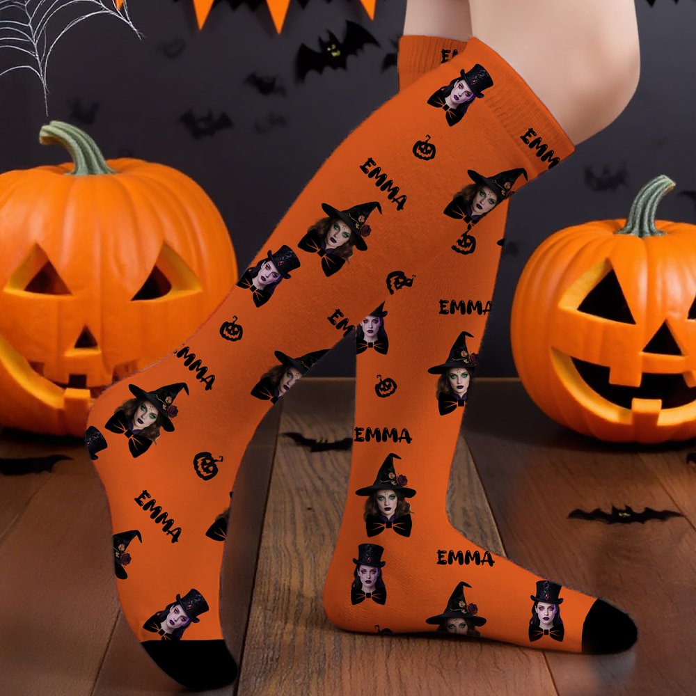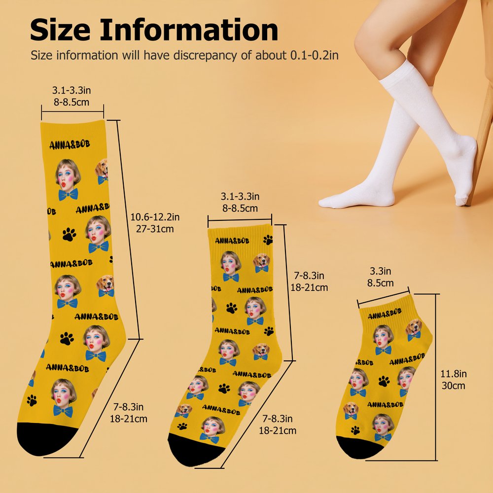 Featuring three different lengths—ankle, mid-calf, and knee-high—these socks suit various style preferences and purposes. The adorable bow tie and pumpkin paw prints add a playful charm, while personalized names and images make it a one-of-a-kind gift for any special occasion. The customization options, including face photos and names, reflect individuality while elevating your outfit with a stylish feeling.