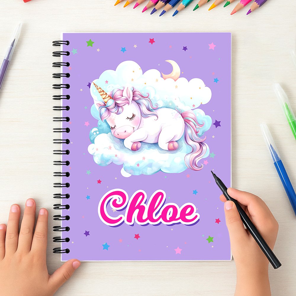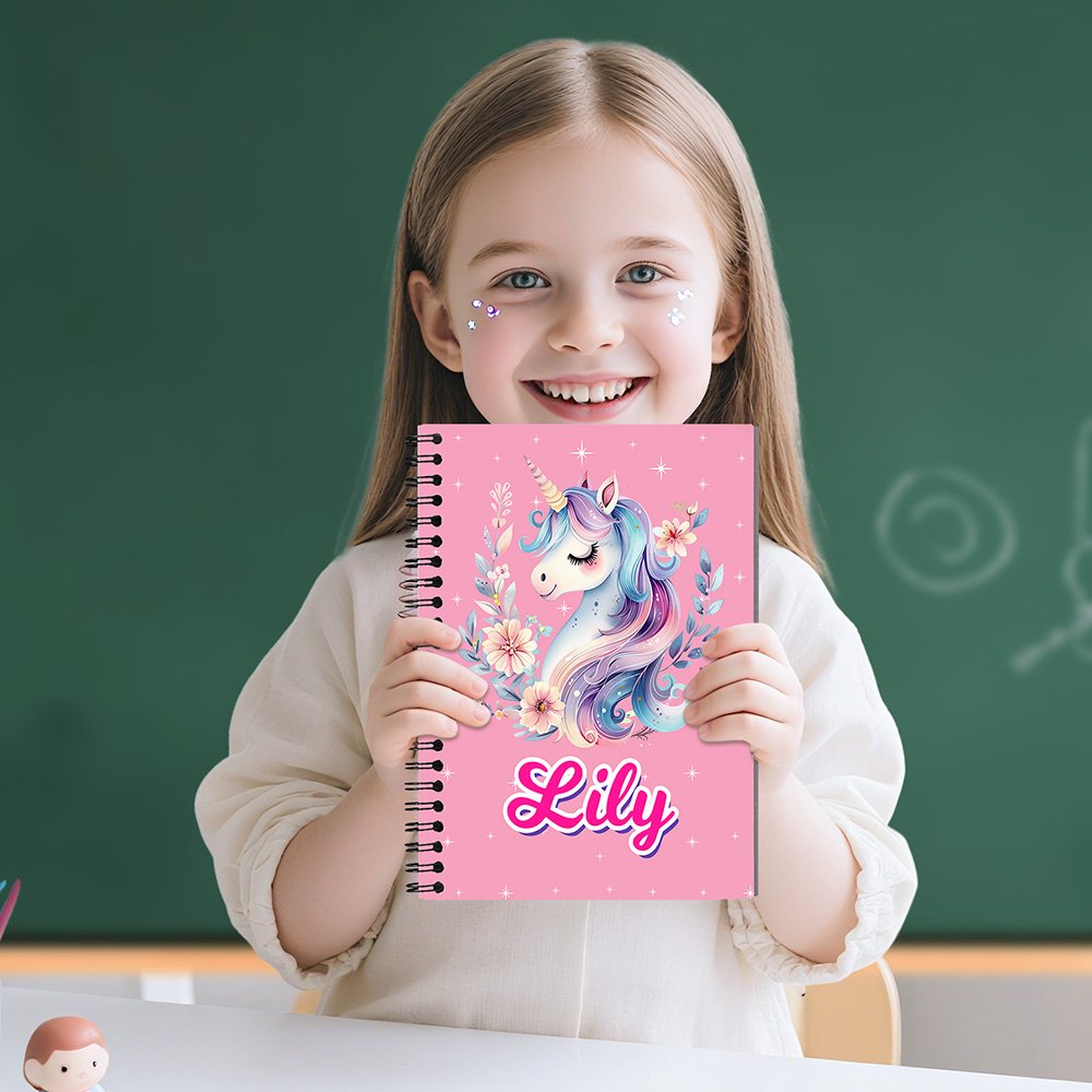 Notatboken vår har en drømmende enhjørning som tema, med et livlig og fantasifullt design. Omslaget har en myk fargetone, og den drømmende enhjørningen, som symboliserer renhet og kraft, er naturtro med sin regnbuefargede manke og halefjær, prikket med blinkende stjerner, full av barnlighet og magisk atmosfære. Du kan tilpasse barnets navn for å skape et unikt læringsverktøy for dem.
