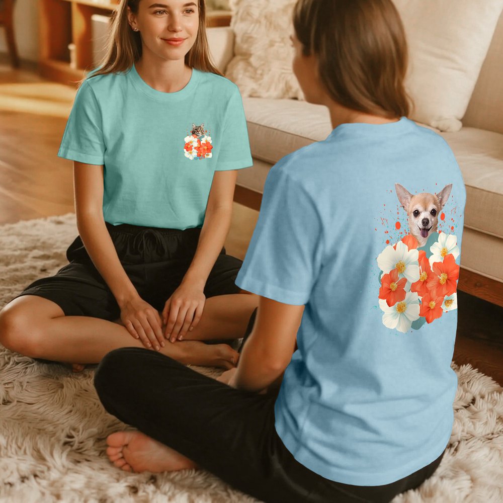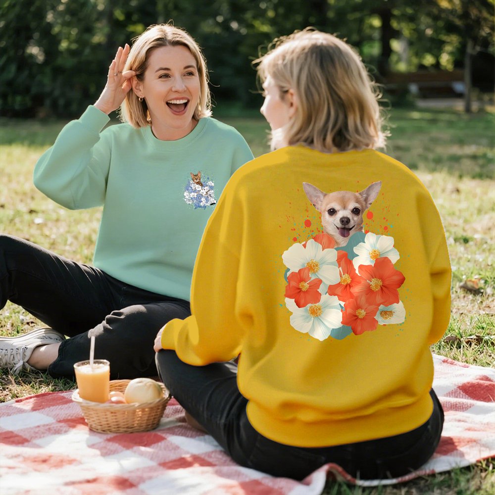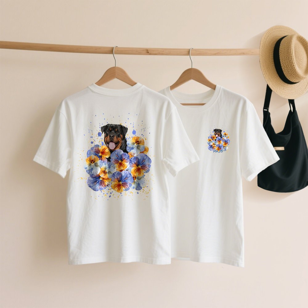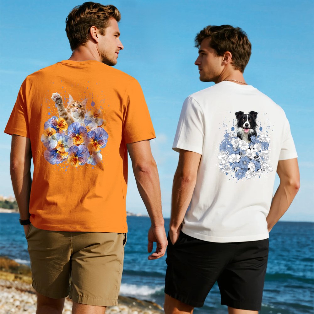 Bland portrettet av kjæledyret ditt med naturlige blomster for å skape et tilpasset kunstverk som kommer til liv på klærne dine. Hvert kunstverk er unikt, og gjør turklærne dine til et mobilt fotoalbum som får forbipasserende til å stoppe opp og beundre det søte kjæledyret ditt.