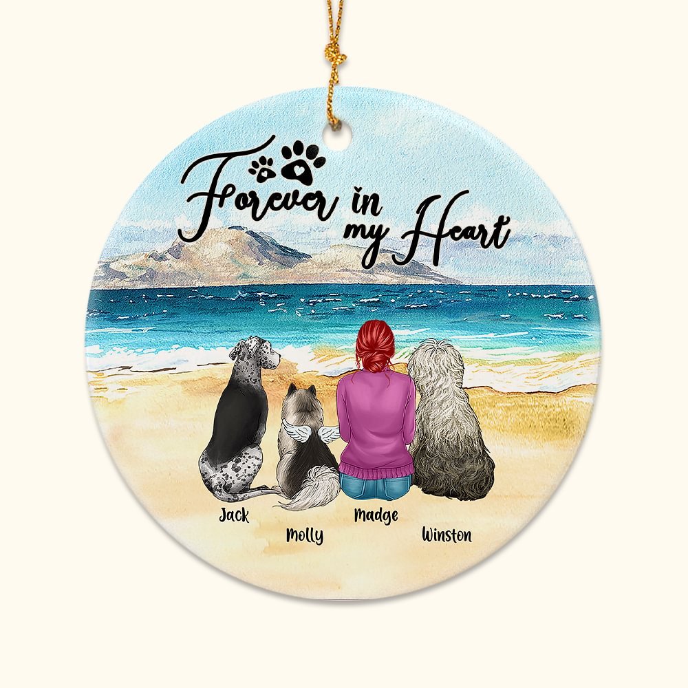 Personalized Forever in My Heart Round Ceramic Ornament with Sea Scenery Background Christmas Birthday Gift for Dog Lover