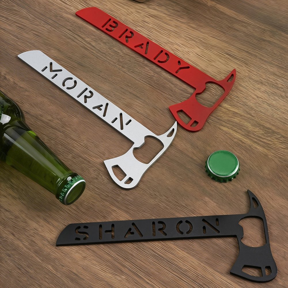 Denne flaskeåpneren er utformet i den ikoniske formen til en brannøks, og er en trofast gjengivelse av den klassiske silhuetten som en hyllest til brannmenns mot og uselviskhet. Den er tilgjengelig i rødt, svart og sølv, og hver farge gjenspeiler den symbolske betydningen av brannmannskap, samtidig som den tilfører et snev av livlig stil til hverdagslige øyeblikk. Den kan også personaliseres med et navn, slik at du kan uttrykke din egen individualitet og smak.