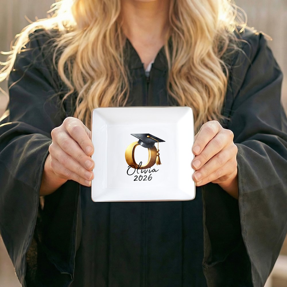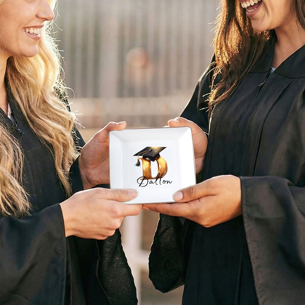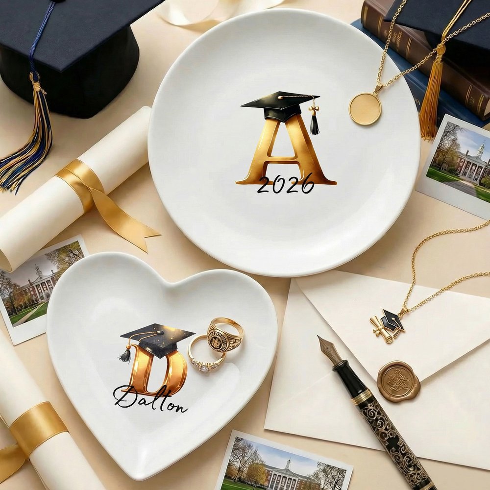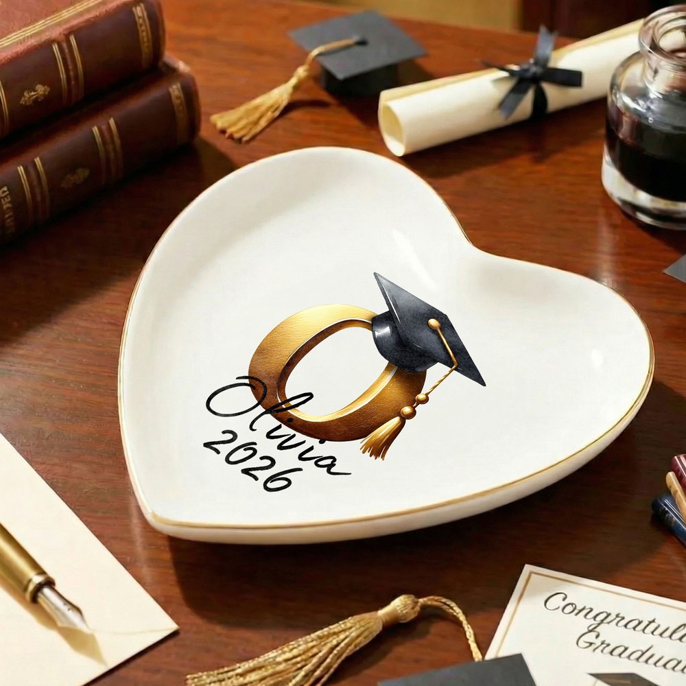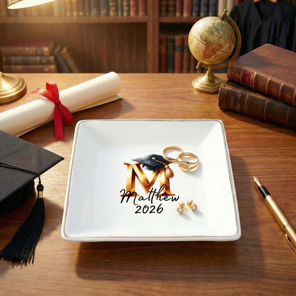 Et lite skrivebordsbrett til oppbevaring av ringer, øredobber og nøkler, som også fungerer som et minne om eksamen. Det passer på sovesaler, soverom, kontorer og andre steder, og vil alltid fremheve stoltheten over akademiske prestasjoner.