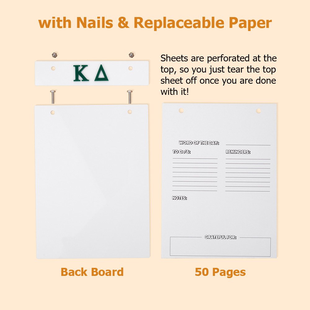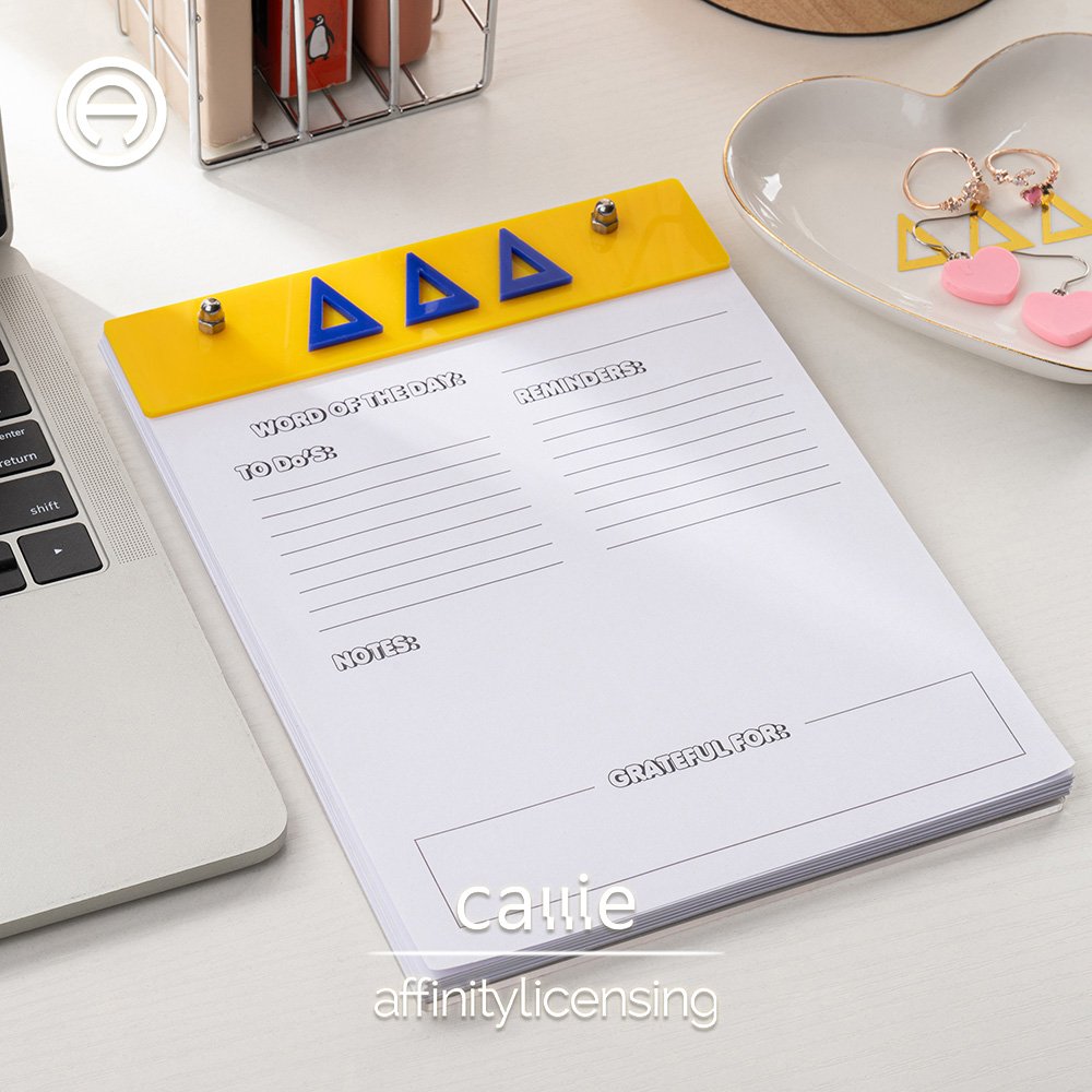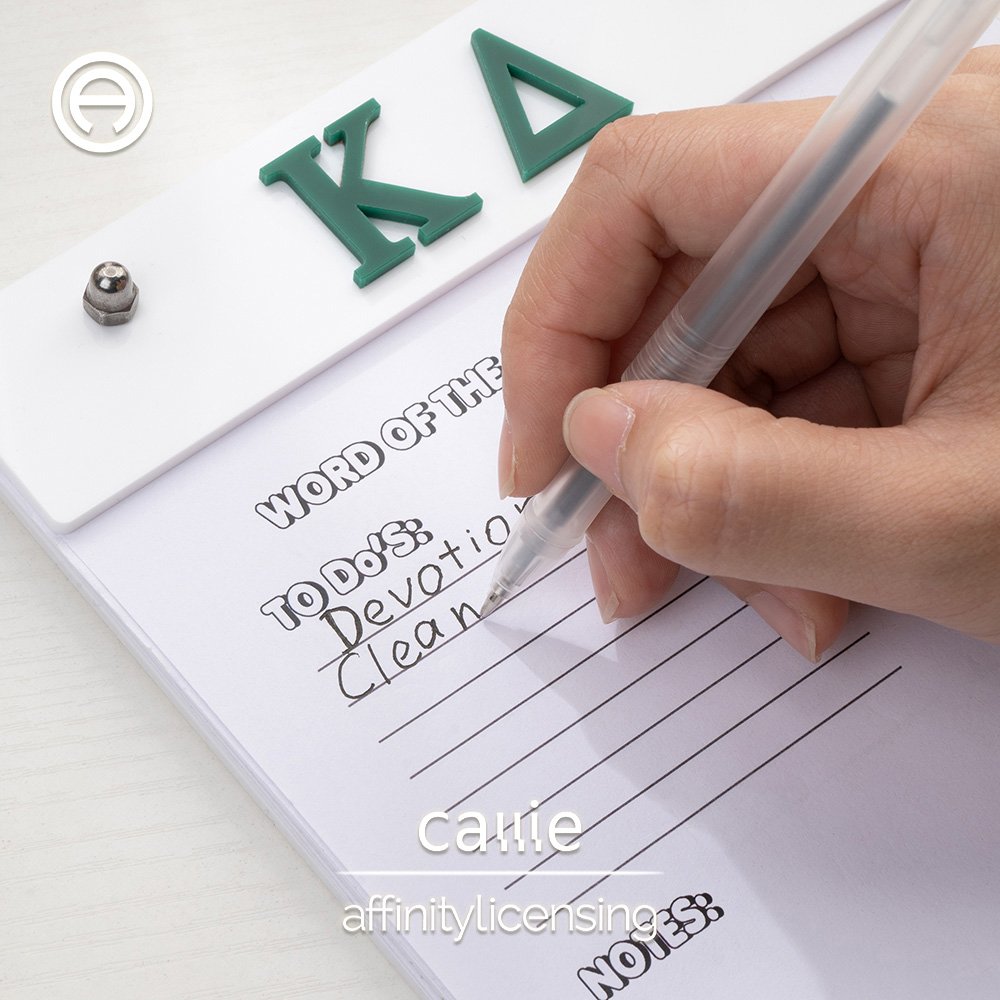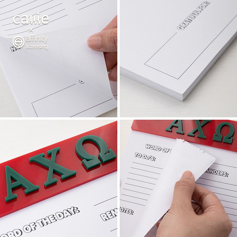 Each notepad features a customizable Greek letter design that celebrates your sorority. Whether you represent Delta Delta Delta, Chi Omega, or go custom, the eye-catching acrylic header adds a touch of color and pride to any desk or dorm room.