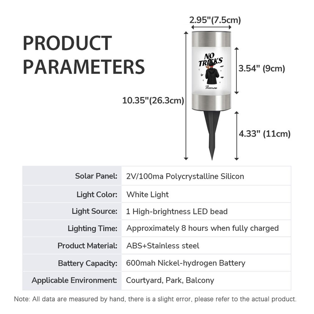 Designed with stainless steel and waterproof plastic, this durable fixture withstands all weather conditions. Featuring a built-in optical sensor, simply unscrew the top cover to activate the solar charging switch. It automatically charges during daylight hours and provides approximately 8 hours of continuous illumination at night. No additional wiring or battery replacement is required—it automatically illuminates your lawn, flower beds, or memorial sites.