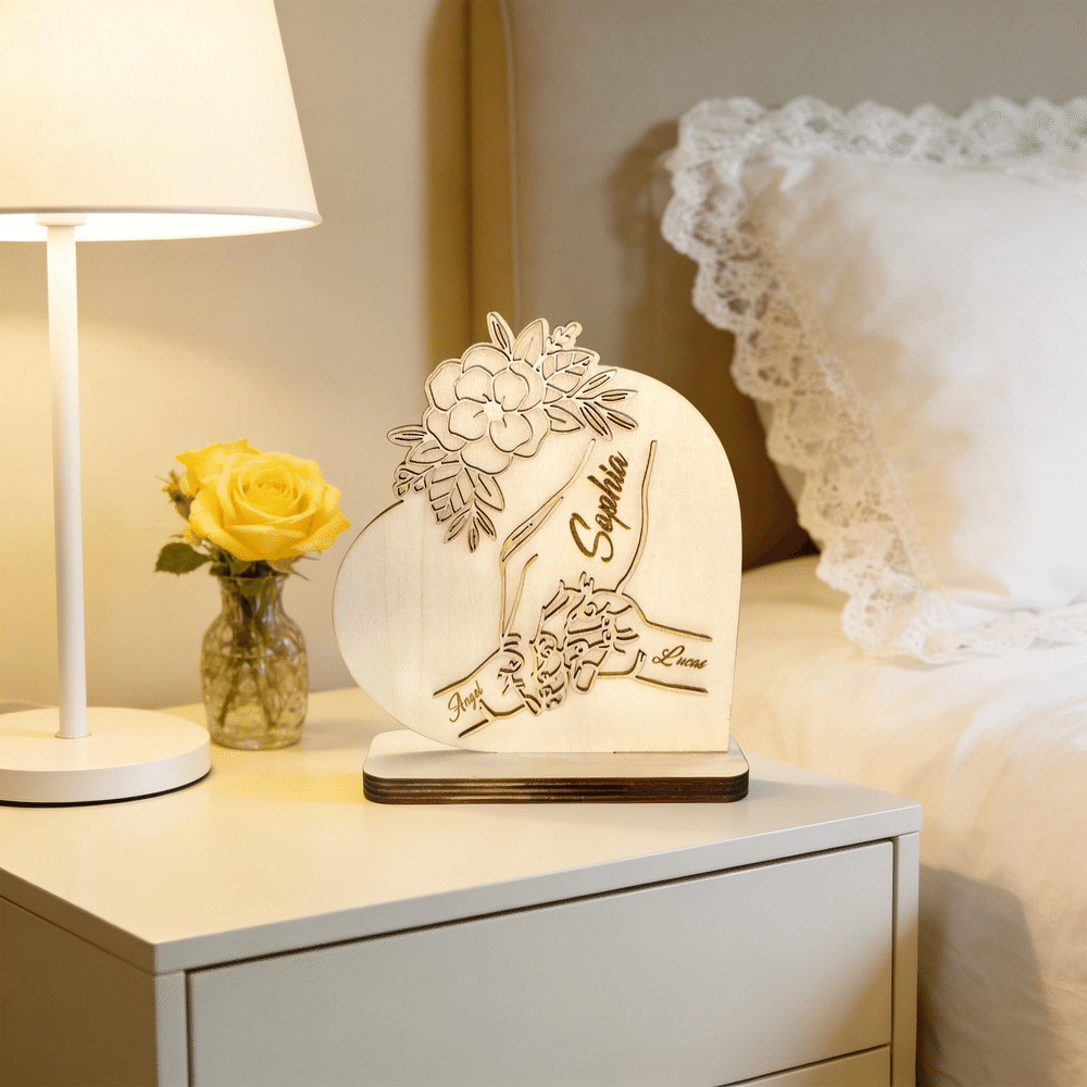 Et gjennomtenkt valg for mødre, familiemedlemmer eller familier med flere barn. Ideell til morsdag, babybursdager, merkedager og mye mer. Med et eget navn og hånd-i-hånd-design uttrykker den familiens kjærlighet og omsorg. Både en koselig dekorasjon i hjemmet og et sentimentalt minne fylt med familieminner og hengivenhet.