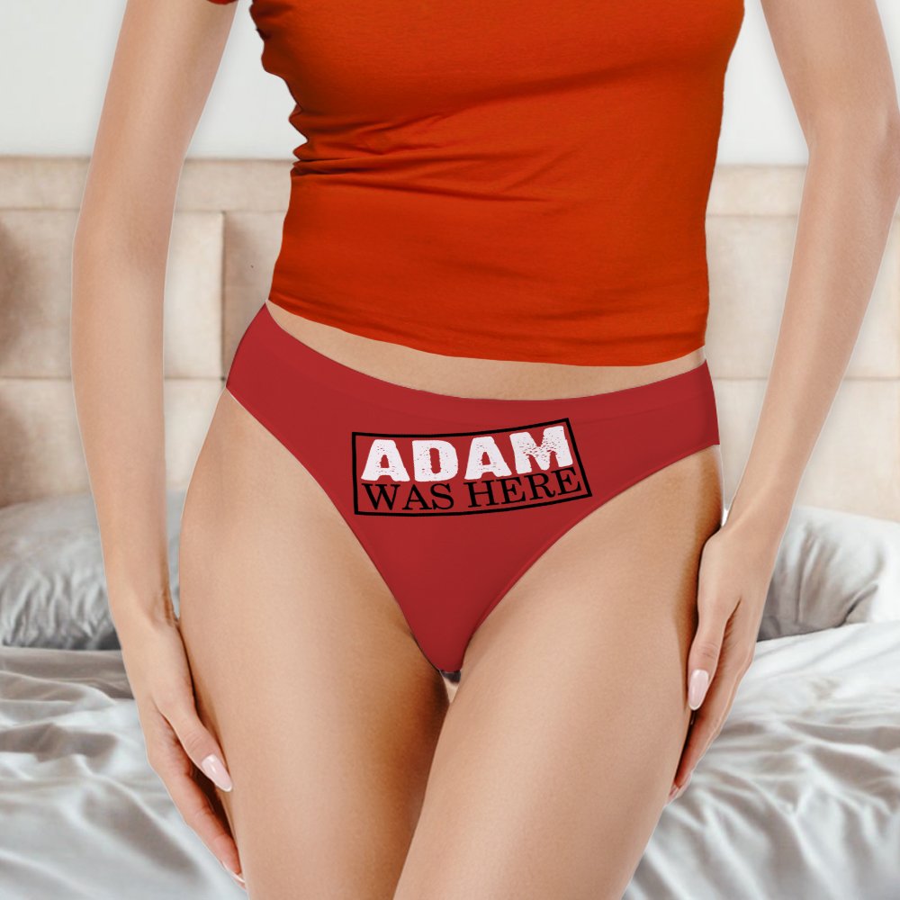 Our women's underwear is in hot and bright red, symbolizing love and desire, igniting your passion and romance. We have designed three styles with slogans, such as "SEALED WITH A KISS BY...", "PROPERTY OF...","...WAS HERE"; you can add the man's name, swear sovereignty, and leave your mark on your girlfriend.