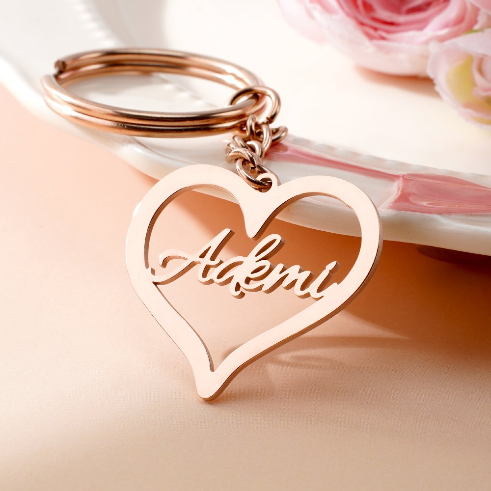 Personalized Hollow Heart-shaped Keychain with Name Purse Handbags Accessories Birthday Gift for Women Girl