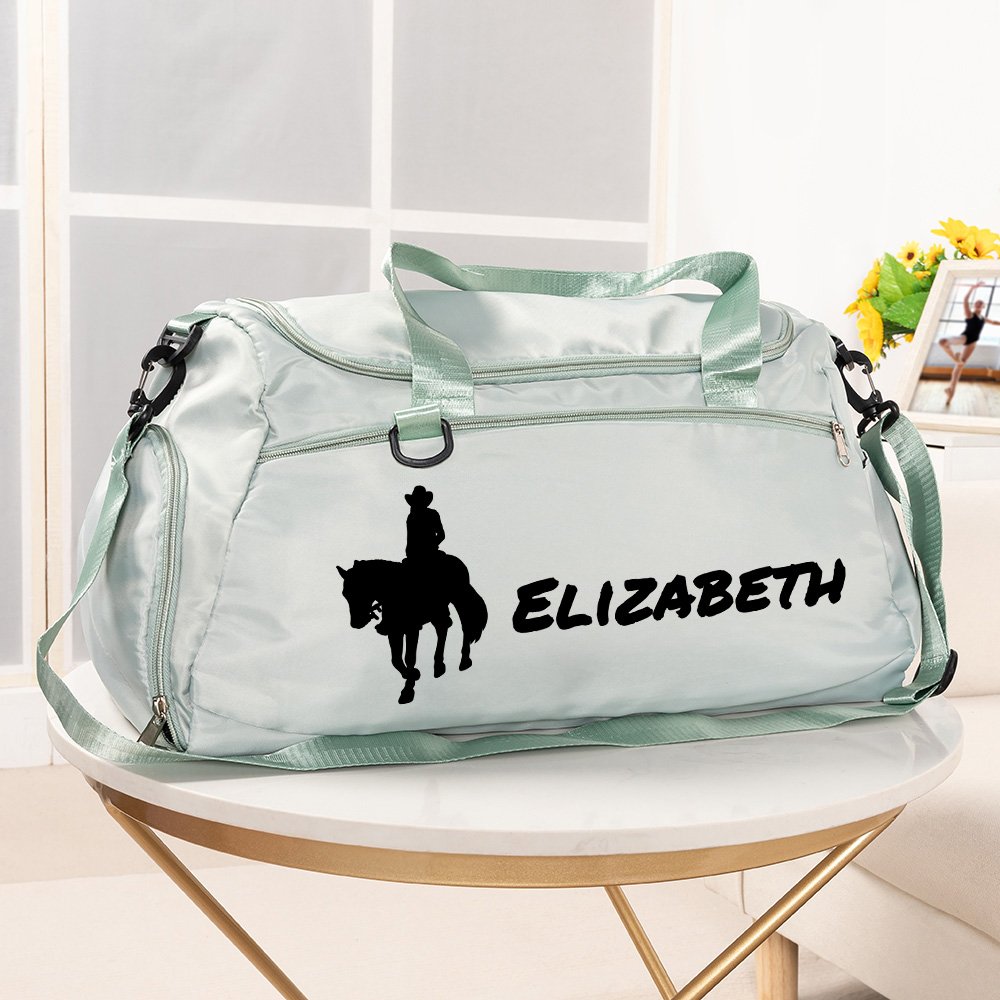 This large travel duffle bag can customize an icon on the front, allowing you to choose from 15 unique icons, making it a perfect equestrian gift for horse lovers. With five vibrant bag colors to choose from and the option to add a name, you can create a one-of-a-kind accessory that showcases your love for horses.